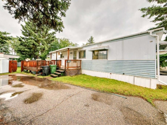 Charming three-bedroom home on a private corner lot in Chateau Estates! Backing onto green space with access to a park and clubhouse, this property offers the perfect mix of comfort, privacy, and convenience. A spacious covered front porch welcomes you home, perfect for entertaining guests or relaxing outdoors. Inside, the bright and inviting floor plan features a sun-filled kitchen with a large south-facing window, creating a warm, cheerful atmosphere for everyday living. The adjoining living room is highlighted by a beautiful bay window and opens to a sunken flex space, ideal for a home office, gym, or additional lounge area. This home includes three bedrooms and a four-piece bathroom, providing plenty of space for family or guests. Additional highlights include central A/C and off-street parking for two vehicles. Residents of Chateau Estates enjoy access to a clubhouse offering a fitness center, sauna, locker rooms, pool, games area, and meeting rooms, enhancing everyday lifestyle convenience. The location is unbeatable, just minutes from shopping, dining, and with easy access to Stoney Trail and Highway 1 for a quick commute anywhere in the city. With reasonable lot fees and a well-managed park, this is an outstanding opportunity to own a home in a welcoming, community-oriented setting.