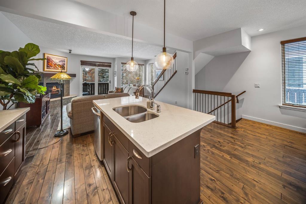 Tucked into a central original stretch of Canmore, 105 Rundle Drive offers a refined take on low-maintenance mountain living. This end-unit townhome backs onto a forested corridor that gently unfolds toward the Bow River, creating a rare sense of privacy just steps from town. From both the front and rear of the home, mountain views frame daily life—an ever-present reminder of why you’re here.