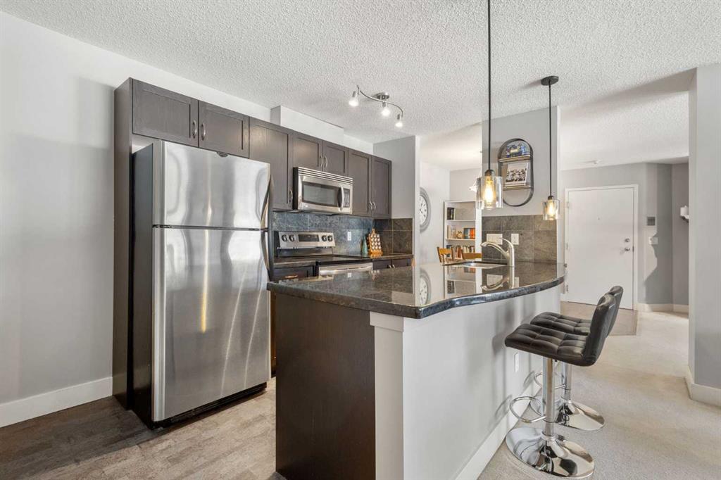 The open-concept layout includes a functional kitchen with granite countertops, stainless steel appliances, and a convenient pantry, flowing seamlessly into the dining area and inviting living room complete with a cozy wood-burning fireplace. Step outside to your private patio backing onto a large green space—perfect for relaxing or entertaining. The primary bedroom offers a walk-in closet and a 3-piece ensuite with a separate shower. A generous second bedroom provides flexibility for guests, a home office, or den. A full 4-piece bathroom and in-suite European washer/dryer combo add to the home’s convenience. Additional features include one heated underground parking stall and a dedicated storage unit. Enjoy an array of exceptional amenities including an indoor pool, hot tub, fitness centre, tennis court, and social room. Ideally located close to parks, pathways, transit, and major routes, this home offers both comfort and convenience in a sought-after community.