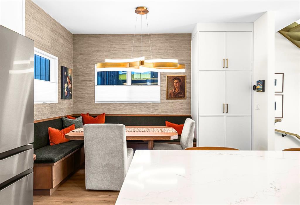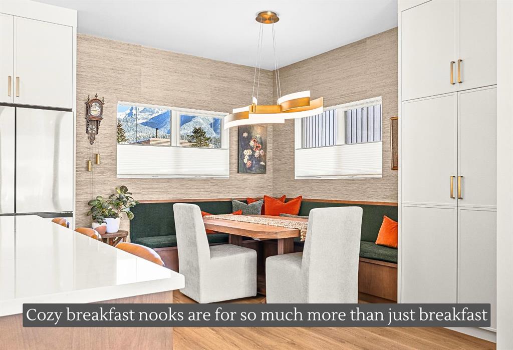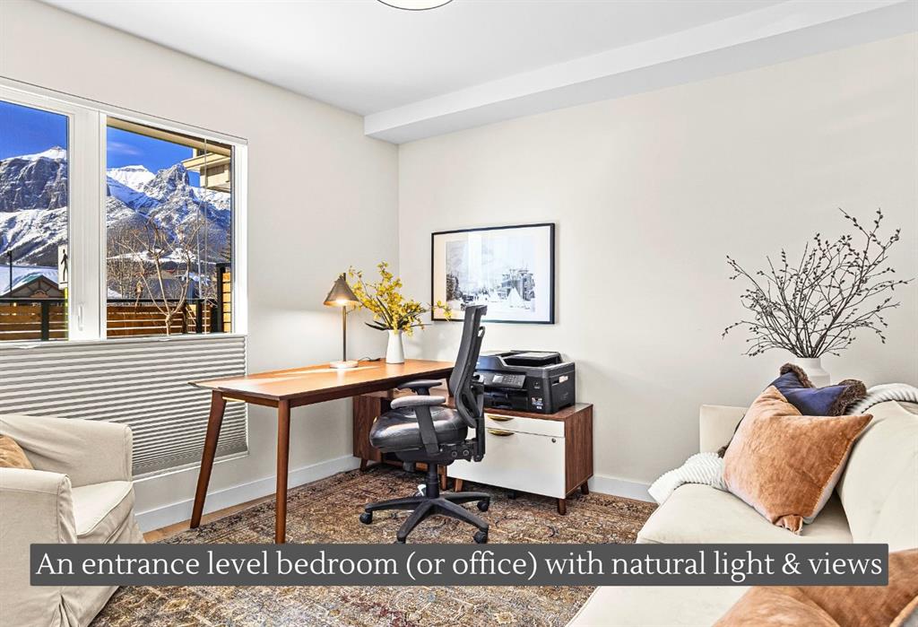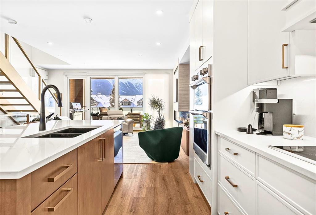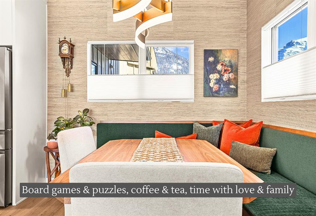 Welcome to the alpine sanctuary of Raven’s Peak (Residential Only) in the heart of majestic Canmore — Completed in 2023 by a local homebuilder, this like-new 3-bedroom, 3-bathroom townhome blends thoughtful craftsmanship with refined modern design. Every detail feels intentional. Every space feels elevated. Step into the living room and feel the immediate impact of a dramatic floor-to-ceiling wall of Lux triple glaze windows — a stunning architectural statement that perfectly frames the grand mountain views beyond. Whether it’s sunrise alpenglow or a snow-dusted evening skyline, the striking peaks of the Canadian Rockies become your ever-changing artwork. The heart of the home is a showpiece kitchen anchored by a prominent quartz island — sleek, sculptural, and ideal for entertaining. Efficient stainless steel appliances complement clean modern lines, while a cozy breakfast nook invites slow mornings with coffee and your loved ones. It’s a space that effortlessly transitions from a quiet intimate evening, to a lively dinner parties with friends. The primary bedroom is nothing short of breathtaking. Imagine waking up to unobstructed mountain views — visible directly from your pillow. No buildings. No rooftops. Just stars, peaks, and bright blue sky. Spacious and serene, this retreat offers the kind of daily inspiration that never grows old. Beyond beauty lies performance. A highly efficient geothermal system provides sustainable heating and cooling year-round, delivering exceptional comfort with reduced environmental impact. Triple-glaze windows enhance both efficiency and tranquility, creating a peaceful indoor environment in every season. Practicality is equally refined. A convenient mudroom and bathroom sit directly off the garage — ideal for after mountain adventures. The single attached garage features durable epoxy flooring and a slatwall organizing system to keep all your gear in order. An exterior hose makes clean-up easy after hikes or bike rides, and the fenced front patio offers a private space to relax in the alpine sun & air. Perhaps most coveted of all — direct pedestrian access across the street to downtown Canmore. Leave the car behind and stroll to cafés, boutiques, groceries, dining, and trailheads within minutes. No need for Canmore’s amazing free public transit, but there is a stop a stones throw away. This is more than a townhome.