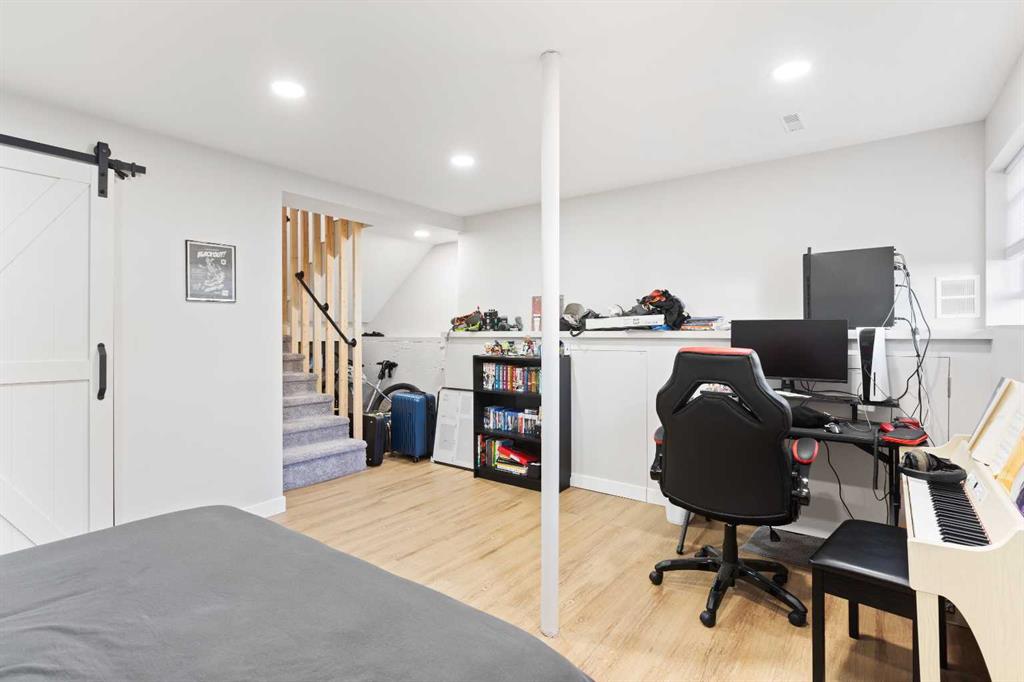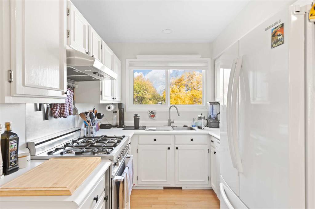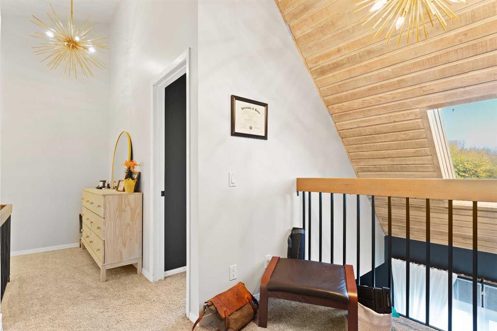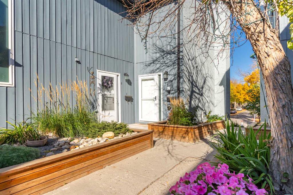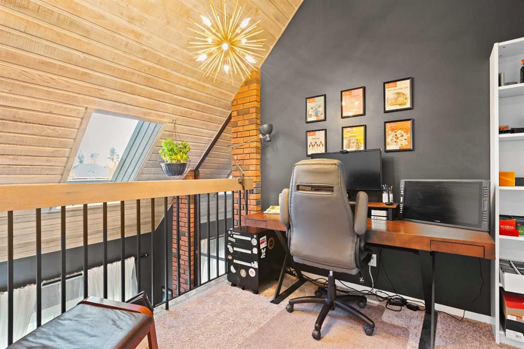 Stylish Inner-City Townhome in Crescent Heights | Vaulted Ceilings | Gas Fireplace | Live in Crescent Heights, one of Calgary’s most desirable inner-city neighbourhoods, just minutes from downtown, the Bow River pathways, and an incredible variety of cafés, restaurants, and local amenities. This architecturally distinctive multi-level townhome is a rare find, with no shared walls in the primary living spaces and no neighbours above or below. Inside, you’re greeted by soaring vaulted ceilings, natural light throughout, and a warm mid-century aesthetic with exposed brick, wood detailing, and a striking feature fireplace. The inviting living room opens onto a private balcony framed by mature trees—ideal for morning coffee or an evening glass of wine. The bright white kitchen offers a Bertazzoni gas range, ample cabinetry, and sightlines through the dining area for easy entertaining. Upstairs, the lofted office, complete with skylight, overlooks the living space below, creating a perfect work-from-home environment. The spacious primary bedroom enjoys large windows, vaulted ceilings, and easy access to the updated 4-piece bath. Downstairs, a fully finished lower level offers a large bedroom, generous storage, and laundry area. Additional highlights include assigned parking, modern lighting, and a well-managed, freshly painted complex with low condo fees and a peaceful courtyard setting. As a bonus, enjoy optional use of a garden bed with south sun exposure. Experience the best of urban living with a quiet residential feel on a traffic-calmed street—just steps from Centre Street transit, Rotary Park, and schools, with quick access to downtown and major routes.