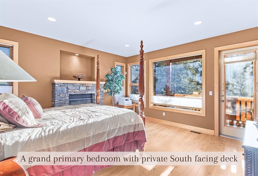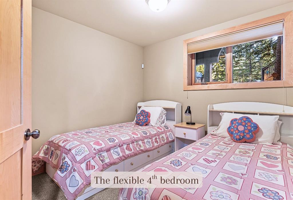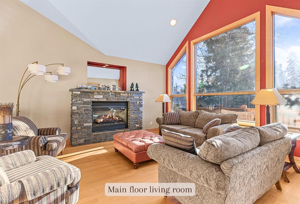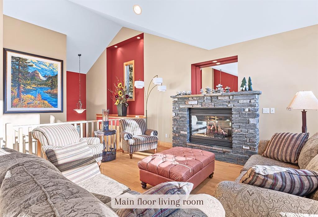 A beautifully designed mountain-style townhome, with 2,731 sq ft of living space (4 bedrooms & 3 bathrooms) in Silvertip Golf Resort. This quality Kidner built home is set on a peaceful dead-end cul-de-sac which provides a true sense of escape & tranquility. Carefully maintained and finished with a touch of flair (Love the stylish red oven!) The great room features soaring vaulted ceilings highlighting the South facing mountain views, pairs nicely with the treed privacy. Ideal as a year round home it features two cozy Rundle stone fireplaces, as well as comfort inspiring air-conditioned to combat the summer heat. In 2022 the charming kitchen received a new stove & dishwasher, along with a new furnace and AC that year too. The perfect maintenance free home, complete with a spacious double garage & driveway to accommodate vehicles and all your outdoor gear. With 4 bedrooms and 3 full bathrooms, this home has room for family, guests, and a dedicated work from home space. The expansive lower-level family room with its high ceilings, cozy in-floor heat, and walkout patio access adds even more flexible living space. Steps from the trail network and tucked away from the busy downtown core, this townhome makes it easy to enjoy the quiet side of mountain living in Canmore.