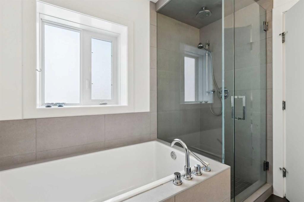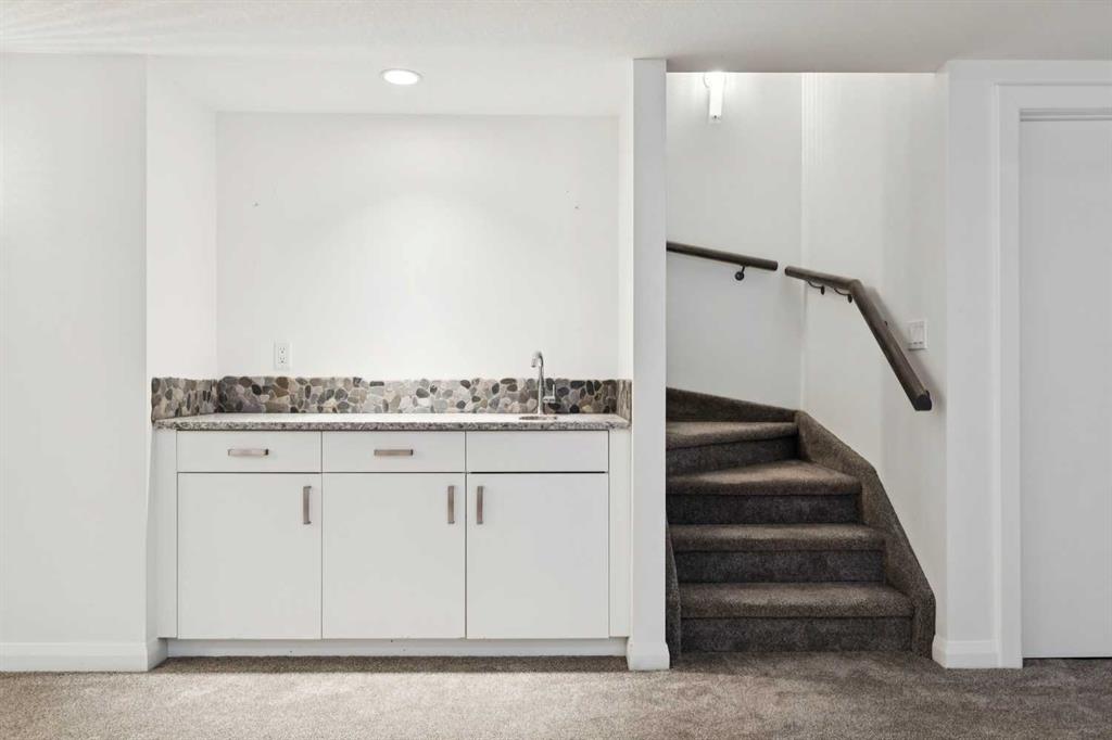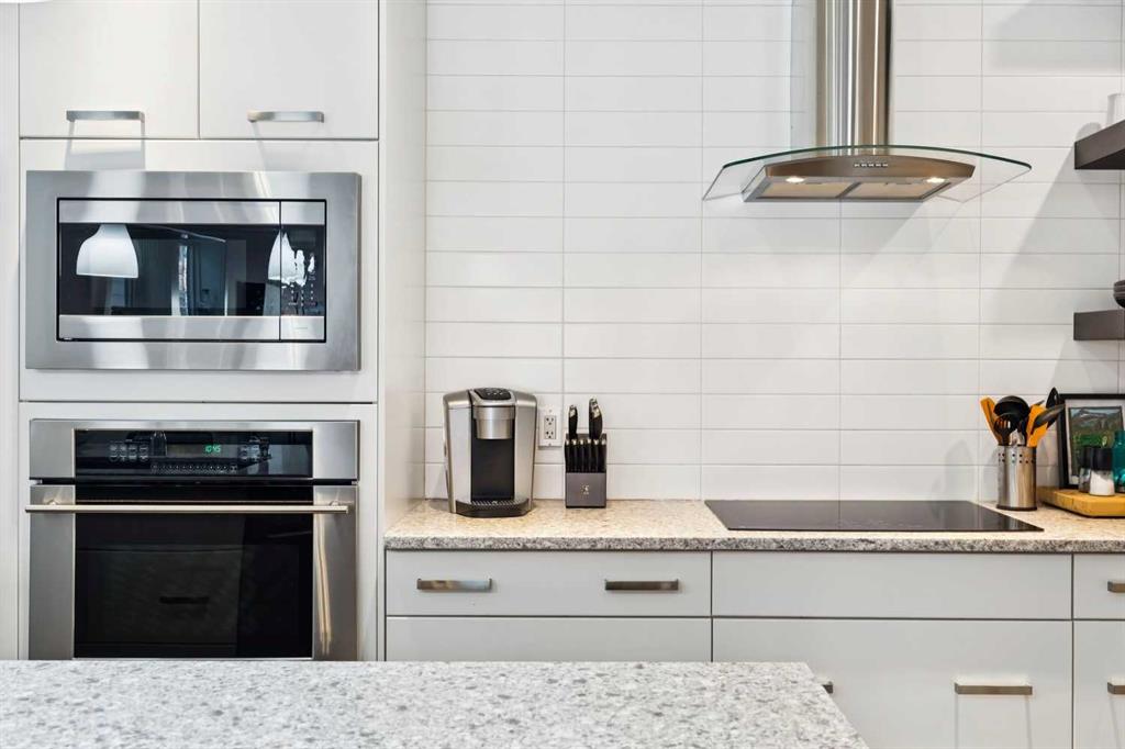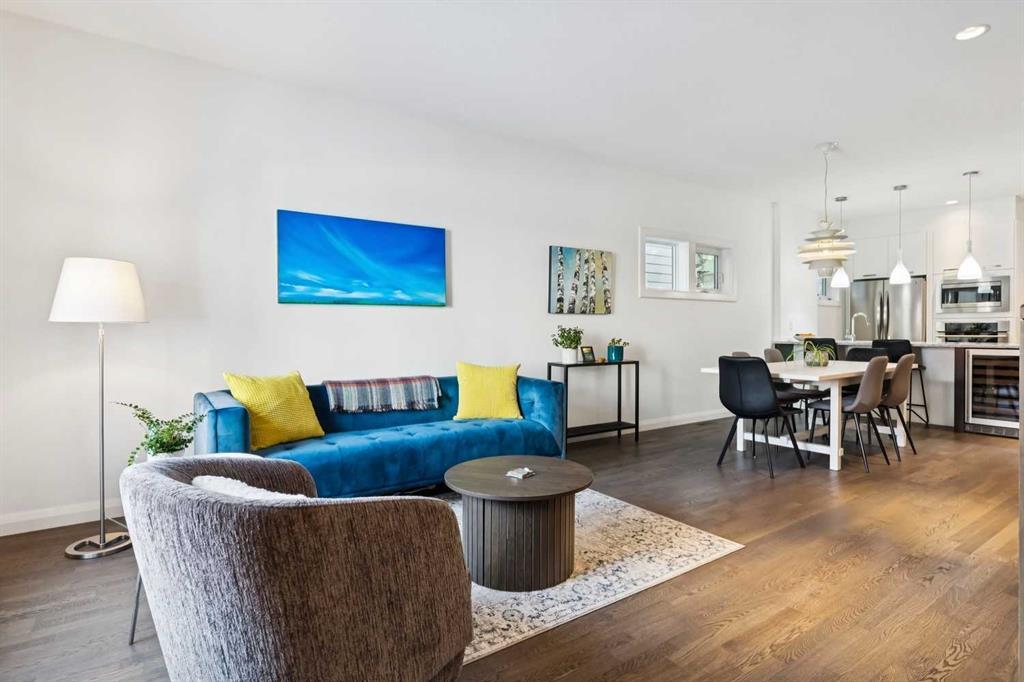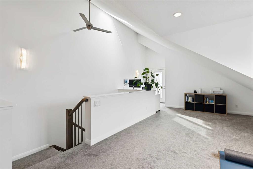 Looking to enter West Hillhurst, but don’t want to sacrifice space or quality? Welcome to #1, 2421 2 Avenue NW: a beautiful front-facing 3-storey townhouse in sought-after West Hillhurst offering over 2,500 sqft of total living space, including a fully developed basement. The home sits at the front of the complex with a welcoming front deck and aggregate concrete exterior, and includes one stall in the detached garage off the back lane along with a visitor parking pad. The main floor features 9-foot ceilings, an extra-wide front door, hardwood flooring, and an open-concept living room, dining area, and kitchen, plus a convenient half bathroom with quartz countertops and tile floors. The kitchen includes stainless steel appliances, an in-wall oven, an induction stovetop with range hood, quartz countertops, pantry storage, a bar fridge, and a microwave replaced in 2023. Soundproofing between units is exellent, and solid doors are installed throughout the home. On the second floor, you will find 2 carpeted bedrooms, laundry, and a full bathroom with quartz countertops, tile floors, and a tiled tub/shower combination. The primary bedroom also includes a large private ensuite with dual sinks, quartz countertops, a tiled shower, and a large soaker tub. The incredible top floor is a bright and versatile space with vaulted ceilings, skylights, a ceiling fan, and a Juliet balcony, making it ideal for a bedroom, office, workout space, playroom, or media room. The developed basement offers new carpet, a large rec room with wet bar, a spacious bedroom, and a full bathroom with quartz countertops, tile floors, and a tiled tub/shower combination, along with the boiler system. Carpet throughout the top two floors and basement was replaced in 2022, and shingles were replaced in 2023. Maintenance fees are a low $418 per month and include reserve fund contributions, snow removal, annual exterior window cleaning, exterior insurance, and electricity for the garage. Located in the highly desirable community of West Hillhurst, this home is within walking distance to the amazing Bow River pathway system, close to a grocery store, and near several schools and local amenities, with quick access to downtown and Kensington. Book your showing before it’s too late!