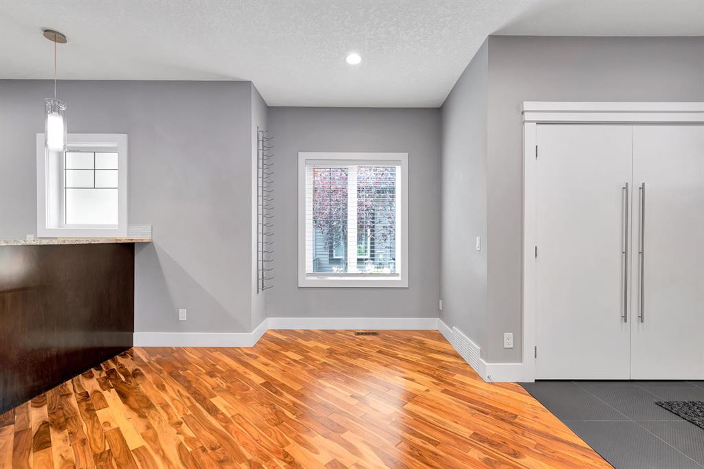 **Open House – Friday Oct 24, 3:00 pm – 6:00 pm** Welcome to this beautifully maintained 3 bedroom, 3.5 bathroom former showhome in the highly sought-after community of Crescent Heights—just minutes from downtown Calgary and with quick access to major thoroughfares like Centre Street, Edmonton Trail, and 16th Avenue. Step through your private entrance to a charming side porch—an ideal place to unwind and enjoy the vibrant neighborhood surrounding. Inside, the main floor boasts a bright, open-concept layout featuring 9 ft ceilings, rich hardwood flooring, and a cozy corner fireplace. The spacious living room flows seamlessly into a dedicated dining area, ideal for hosting family and friends. The modern kitchen is a chef’s dream with granite countertops, a breakfast bar, stainless steel appliances, under-cabinet lighting, and plenty of cabinet space. A convenient half bath completes the main level. Upstairs, a large skylight fills the landing with natural light. The primary bedroom includes a private spa like 3-piece ensuite, granite counters and heated floors. Two additional bedrooms offer flexibility for family, guests, or a home office. The shared 4-piece bathroom with granite counters includes a linen closet for added storage and convenience. The fully finished basement features a bright recreation room with large windows, perfect as a second living space, games room, home office, or play area. You’ll also find another 4-piece bathroom and a separate laundry area. Additional highlights include a detached garage with one parking stall (shared garage), low-maintenance living, and convenient street parking for guests. Located in a prime inner-city neighborhood, you’re just minutes from schools, parks, trendy eateries, and downtown Calgary. Don’t miss this incredible opportunity—book your private showing today!