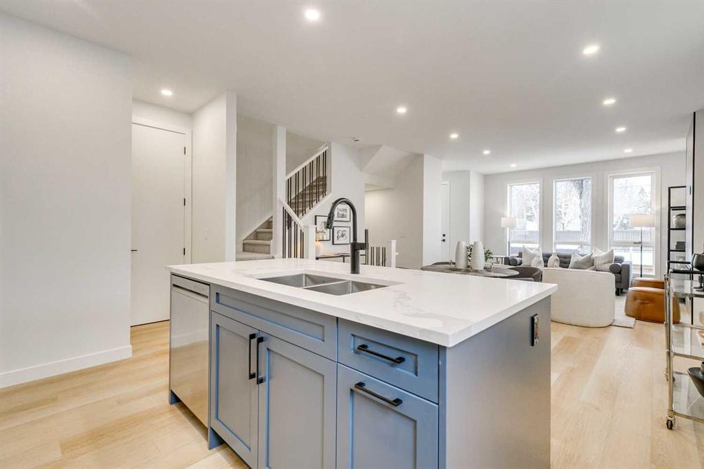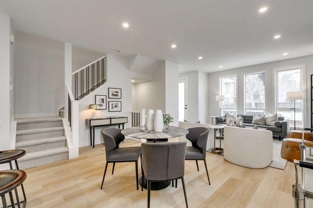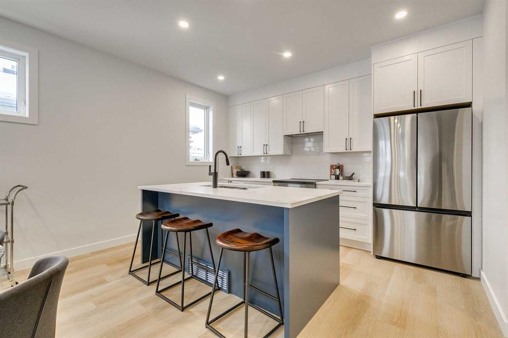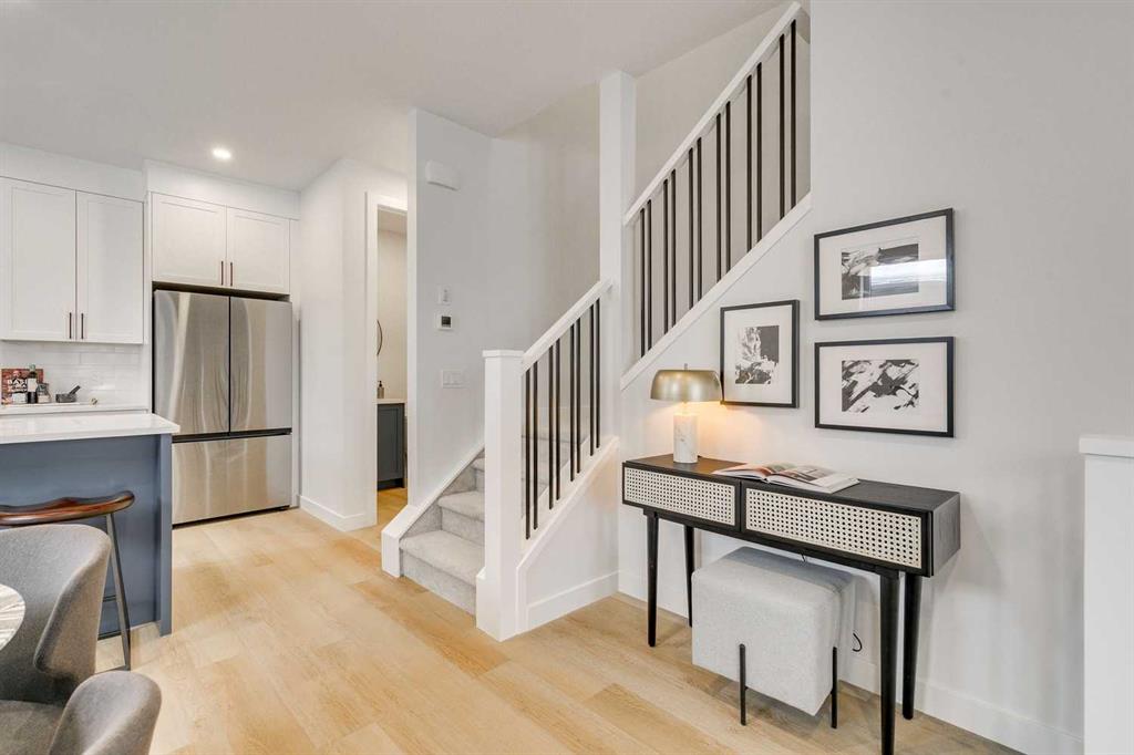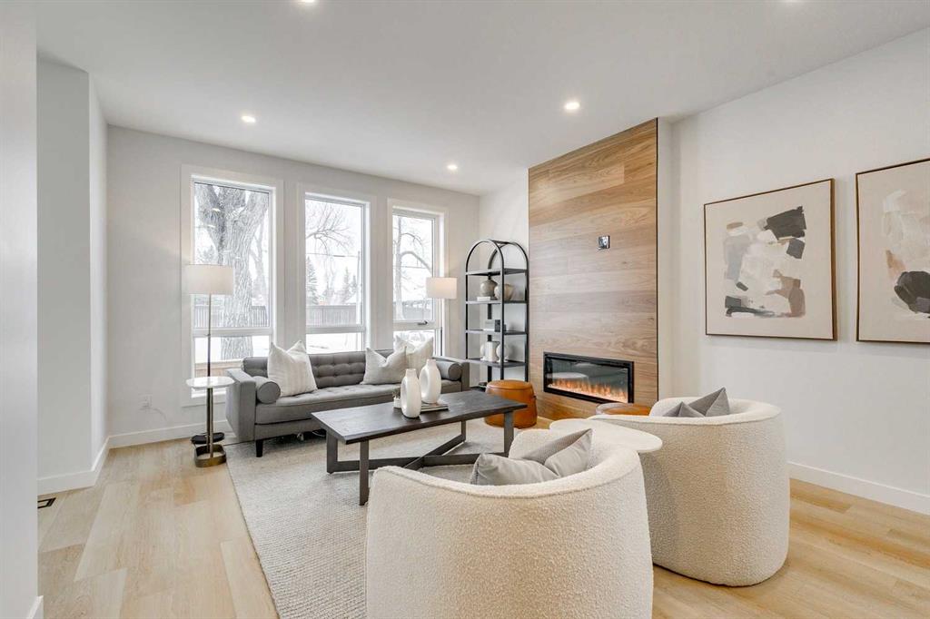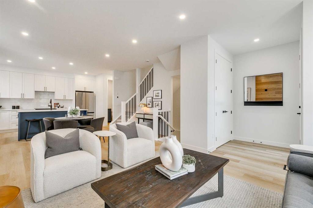 Welcome to 1-440 32 Avenue NW, a newly built 3 bedroom, 3.5 bathroom townhome spanning nearly 2,000 sq. ft. of total developed living space, including a fully finished basement, with 9 foot ceilings throughout situated in the desirable community of Highland Park in Northwest Calgary. The property was constructed by MountainPoint Homes Ltd., a professional builder with decades of experience working on high-end residences across Calgary. The home showcases superior craftsmanship, premium materials, and a design focused on livability and enduring value. The open-concept main floor offers a bright and inviting living area anchored by a sleek fireplace, complemented by a custom-built kitchen with full-height cabinetry, quartz countertops, and a modern appliance package. Thoughtful design and high-quality finishes elevate each detail from the luxury vinyl plank flooring to the precision millwork and thoughtful lighting selections.