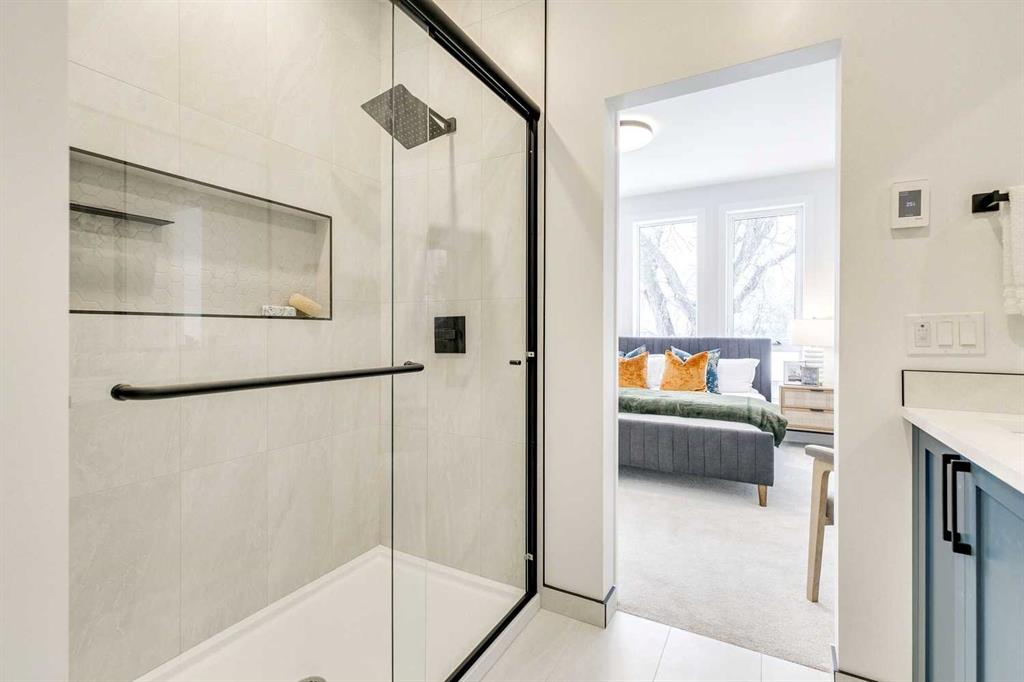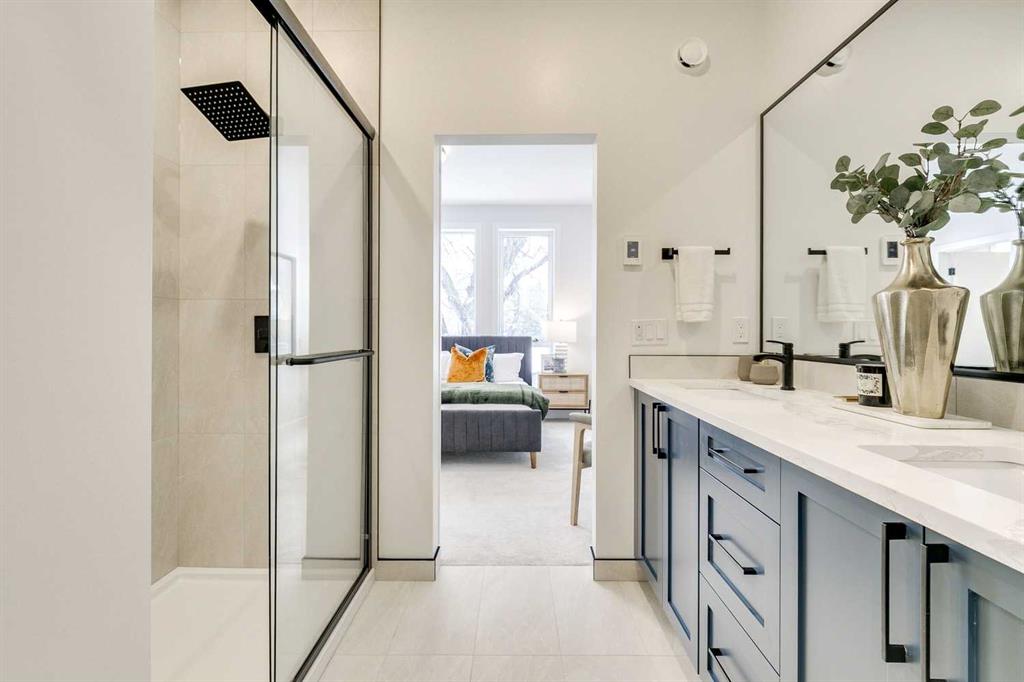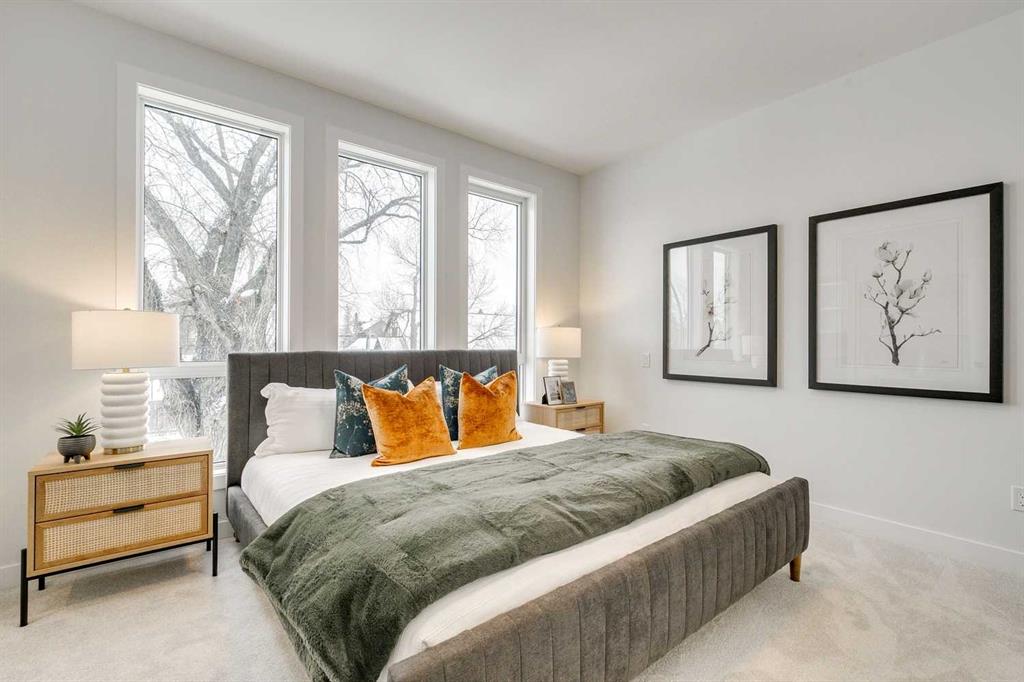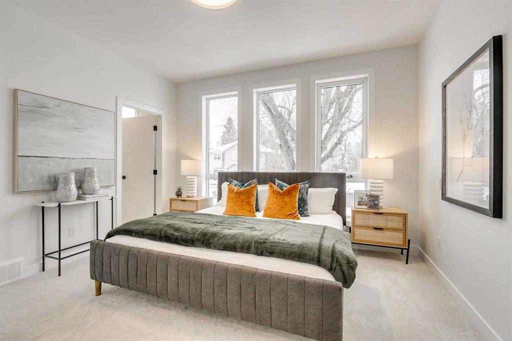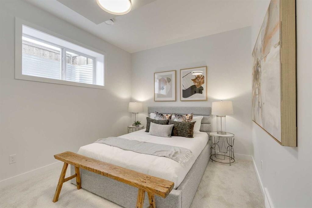 Upstairs, the primary suite provides a private retreat with a custom walk-in closet and a spa-inspired ensuite bathroom with heated floors. A secondary bedroom with its own ensuite and convenient upper-floor laundry add everyday functionality. The fully developed lower level expands the living space with a large recreation area, wet bar, three-piece bathroom, and spacious guest bedroom perfect for hosting or family living. Built with energy efficient systems, complete with A/C rough-in and durable Hardie board siding, this property is built to provide homeowners with peace of mind while also coming with a comprehensive new home warranty package. Each unit includes its own private detached garage parking. Outside features its own private use patio and fenced yard space complete with a gas line, perfect for barbequing or enjoying summer evenings. Located in Highland Park, one of Calgary’s most central and rapidly revitalizing communities. Minutes from Confederation Park, residents will enjoy easy access to downtown, nearby schools, parks, and major amenities, as well as the welcoming charm of a mature neighbourhood poised for long-term growth.