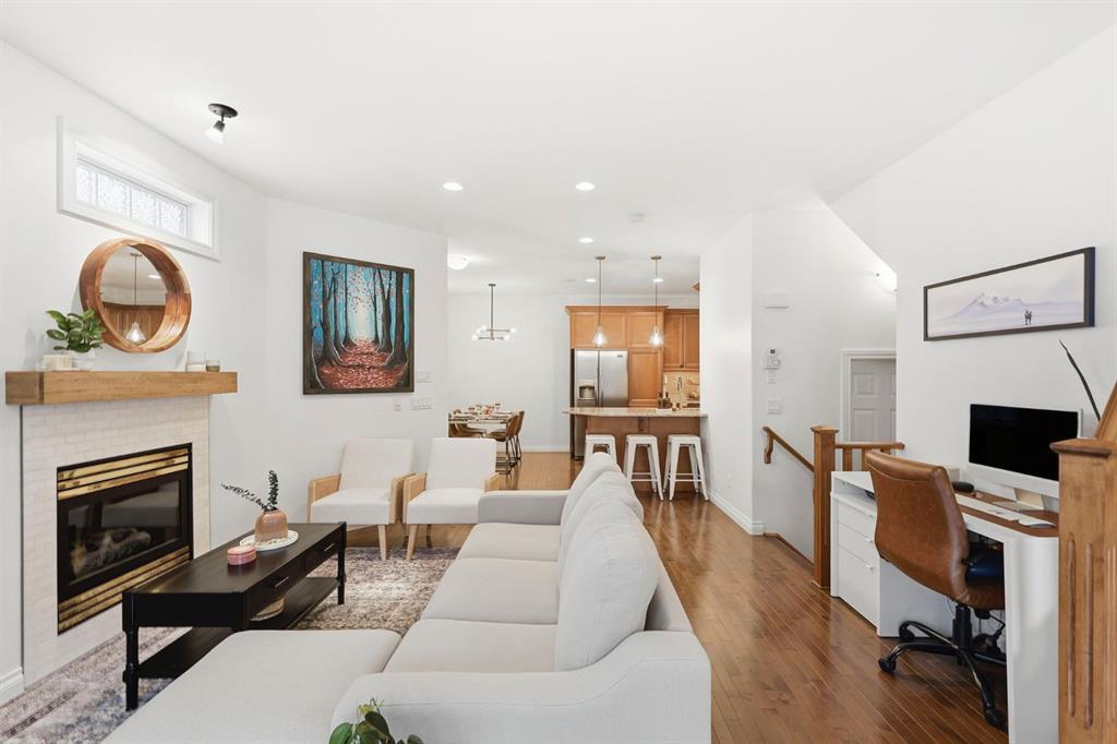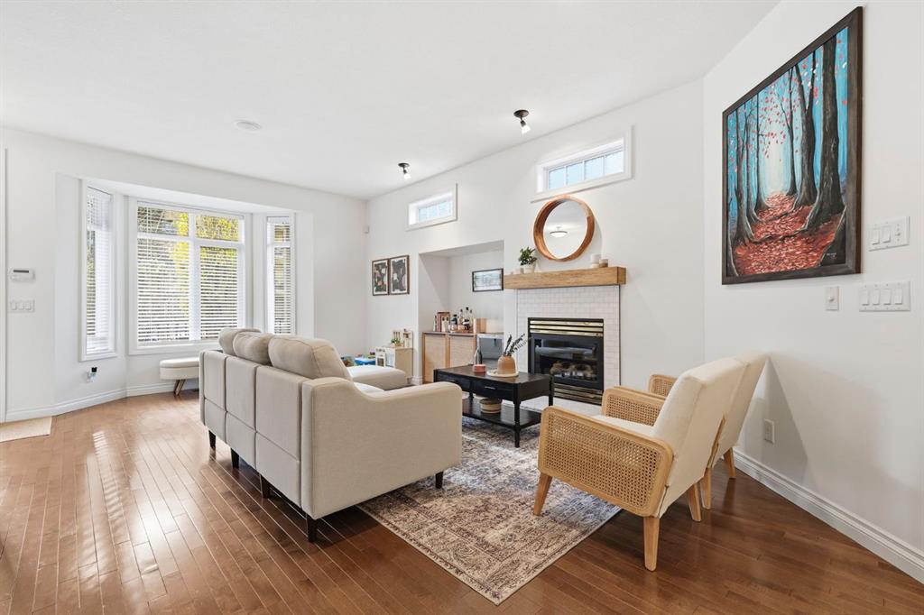 Welcome to this stunning south facing townhome in a well maintained 4 plex offering an abundance of natural light and an inviting open layout. The main floor features hardwood floors, a cozy living room with a gas fireplace, a spacious dining area, and a beautifully finished kitchen with modern cabinetry and stainless steel appliances perfect for entertaining. Upstairs, you’ll find a primary suite with a 4 piece ensuite and walk-in closet, along with an additional bedroom also complete with its own 4 piece ensuite and convenient upper level laundry. The brand new finished basement adds valuable living space with a large recreation area, a bedroom with 3 piece ensuite and plenty of storage. Step outside to enjoy your sun soaked south facing deck and large private patio, ideal for relaxing or summer gatherings. Additional highlights include a detached garage, low condo fees, a built in sound system, new hot water tank (2024), and added roof insulation (2024) for extra efficiency. Located close to Chinook Mall, transit, and just a short drive to downtown Calgary, this home perfectly combines comfort, convenience, and truly a must-see!