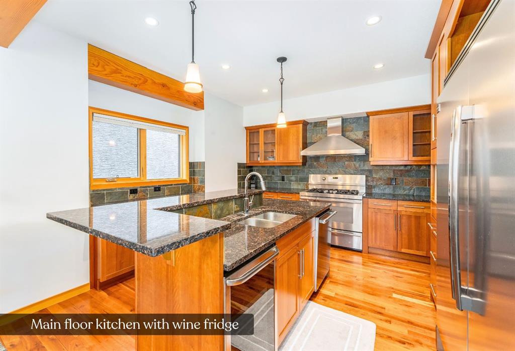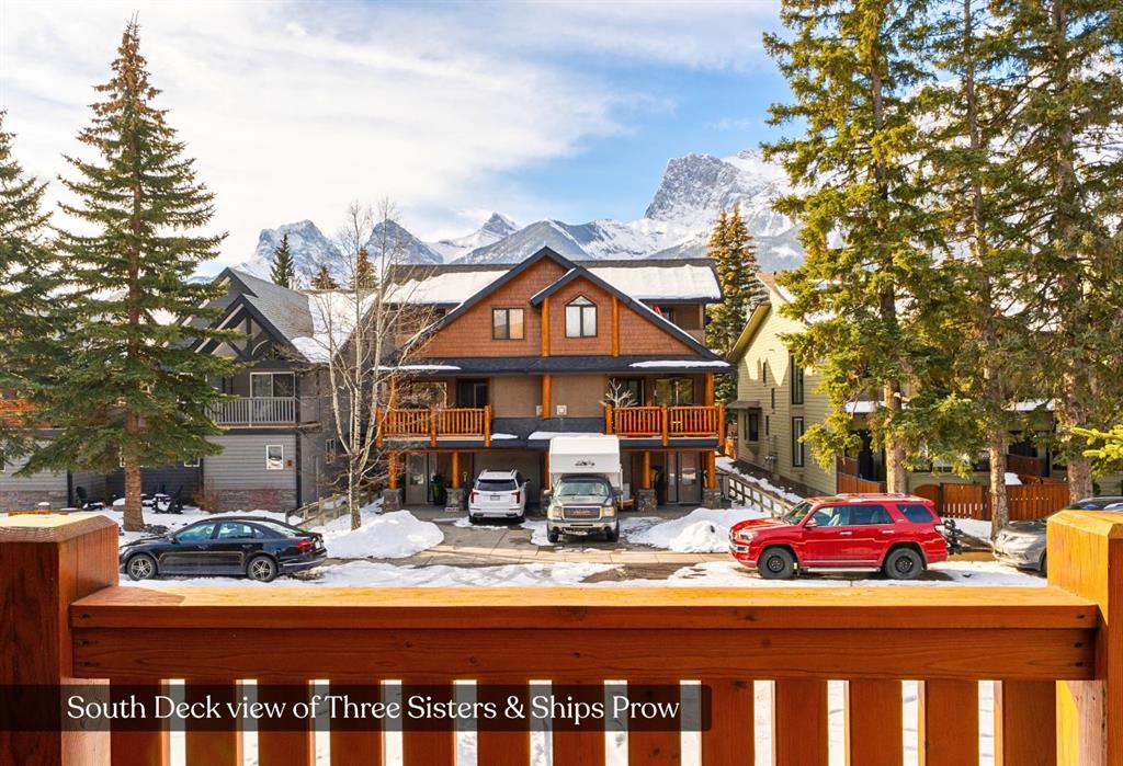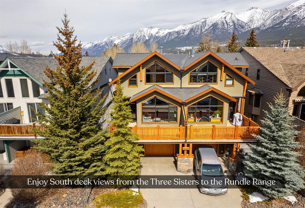 Bathed in sunshine and framed by the drama of the Canadian Rockies, this exceptional south-facing Canmore townhome, built by the local Elk Run Custom Homes is a masterclass in craftsmanship, comfort, and quiet luxury. Perfectly positioned on 5th Street in the highly sought-after, sunny South Canmore, this home offers the rare balance of serenity and accessibility, just steps from the Bow River and a short, easy stroll to downtown Canmore. The main floor welcomes you with soaring vaulted ceilings and a flood of natural light pouring through expansive windows, illuminating the open-concept living space and the open wood staircase. The living room is both grand and inviting, anchored by a striking Rundlestone gas fireplace and framed by sweeping mountain vistas that stretch from the iconic Three Sisters to the majestic Rundle Range. Designed for both everyday living and entertaining, the chef’s kitchen is a true showpiece. Outfitted with upgraded appliances—including a full-size fridge and freezer, gas range, dishwasher, and wine fridge—all complemented by granite countertops, abundant prep space, and a generous walk-in pantry that keeps everything effortlessly organized. Each of the three spacious bedrooms is a private retreat, complete with its own ensuite bathroom, offering comfort and privacy for family and guests alike. Thoughtful touches like custom powered triangle blinds in the primary suite and living room enhance both style and function. Step outside onto the expansive deck and take in the breathtaking alpine mountain scenery—your front-row seat to some of Canmore’s most iconic views. Whether it’s a quiet morning coffee or an evening gathering under the stars, this outdoor space is designed to inspire. Additional features include air conditioning, forced air heating, and in-slab heating for ultimate year-round comfort, along with rich hardwood flooring throughout. The attached heated garage ensures convenience in every season, and additional street parking is readily available. This is more than a home—it’s a lifestyle defined by natural beauty, refined design, and effortless access to everything Canmore has to offer.  Call and view today!