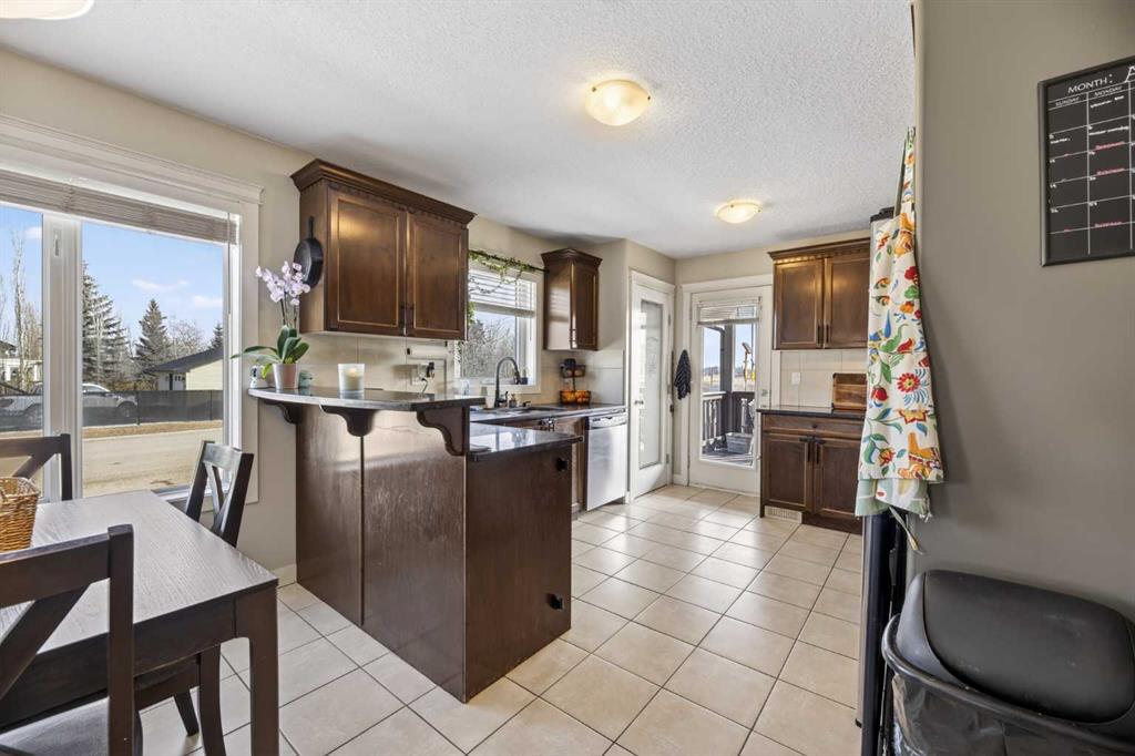 Welcome to an incredible opportunity to own a fantastic, affordable home that truly won’t break the bank! This well-appointed 4-bedroom, 3-bath half duplex is perfectly situated on a desirable corner lot on the south edge of Olds, offering extra space, privacy, & no neighbours behind! Step inside & you’ll immediately appreciate the bright, open floor plan, highlighted by large living room windows that flood the space with natural light, along with beautiful hardwood flooring that adds warmth & charm. The kitchen is thoughtfully designed with granite countertops & ample workspace, well laid out cupboards, great pantry & a convenient exterior door leading directly to your large covered deck—the perfect spot to grill summer dinners, unwind with family, or enjoy your favorite beverage rain or shine. The primary suite, ideally located just off the living room, features walk-through closets leading into a luxurious 4-piece ensuite complete with a jetted tub—your own private retreat to relax at the end of the day. A second main-floor bedroom, styled with a whimsical theme, is perfect for a child or guest. You’ll also find a convenient 2-piece bath & main floor laundry for everyday ease. From here, step directly into the oversized single garage, offering plenty of room for your vehicle, storage, freezers, or even a workshop setup. Downstairs, the fully developed lower level adds incredible versatility with a cozy family room featuring a gas fireplace—perfect for movie nights or quiet evenings with a book. A handy kitchenette makes entertaining easy or provides added independence for guests or roommates. Two additional spacious bedrooms & a 3-piece bathroom complete the lower level, along with a second laundry setup in the utility room. The walkout access to the backyard ensures privacy & convenience, allowing guests or roommates to come and go without passing through the entire home. Outside, the fully fenced yard provides a safe & spacious secure space for both your 2-legged & 4-legged family members to play freely. With so many thoughtful features, flexible living spaces, & unbeatable value, this home checks all the boxes & then some! Must-see property! “Home Is Where Your Story Begins!”