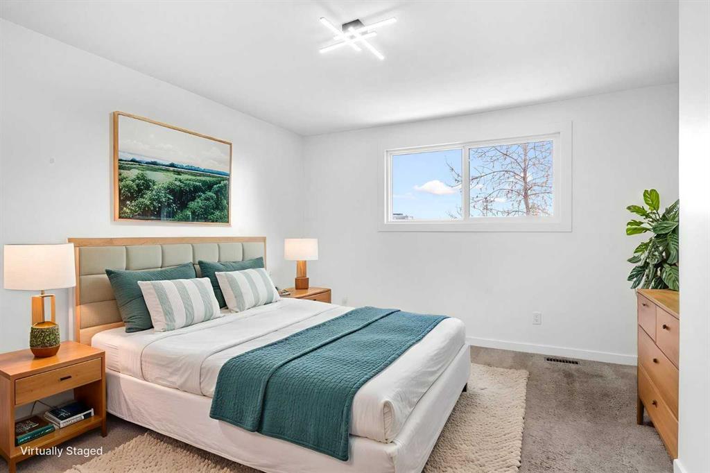 Beautifully Renovated, Move – In Ready Townhome in a prime NW Calgary Location! This bright, modern 2-bedroom townhome has been fully updated throughout and offers exceptional value for first-time buyers or anyone ready to upgrade from apartment living. Set in a quiet, well-managed complex with low condo fees, this home features a private fenced yard, stylish interior renovations, and an unbeatable central NW Calgary location. You will love the fresh, contemporary updates: new flooring on the main level, knock-down ceilings, upgraded lighting, trim, paint, newer windows and doors, and a fully renovated 4-piece bathroom. The beautifully redesigned kitchen showcases shaker style maple cabinets, modern backsplash, Caesarstone counters, and new appliances, with a sunny dining nook overlooking the fenced yard – perfect for pets, gardening, or outdoor entertaining. The spacious, sunlit living room offers plenty of space for relaxation and gatherings. Convenient main-floor laundry includes a newer full-sized washer and dryer. A high-efficiency furnace and newer hot water tank help keep utility costs low and provide peace of mind. Upstairs, the generous primary bedroom comfortably fits a king bed and features his-and-hers closets plus a private balcony, ideal for morning coffee or evening fresh air. The second bedroom is large, with a double closet and built-in desk, perfect as a child’s room, home office, or guest suite. Plenty of storage throughout adds everyday practicality. Step outside to your sunny, private, fully fenced yard, beautifully landscaped with poured walkways and a patio, an excellent outdoor extension of your living space. Parking is effortless with an assigned stall just steps away and ample visitor parking throughout the complex. Pets are allowed with Board approval. The location is truly outstanding: St. Henry Elementary is right across the street, Dr. J.K. Mulloy School is just up the block, and Sir John A. MacDonald School is within walking distance. Minutes to Superstore, Deerfoot City, Nose Hill Park, the library, recreation centre, playgrounds, and major transit routes. Commuting is easy with quick access to Deerfoot Trail, Centre Street, 14th Street, and several nearby bus routes. This home blends modern style, affordability, and everyday convenience in a mature, family-friendly community. With immediate possession available, all that’s left to do is move in and enjoy. A must-see property, beautifully updated, affordable, and perfectly located in the heart of Huntington Hills!