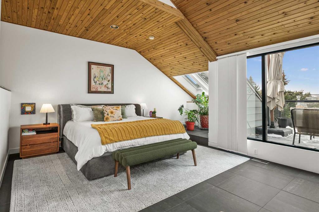 Extensively updated, the home blends natural elements with modern sophistication and high-end finishes to create a warm yet refined aesthetic. Cedar ceilings, expansive skylights & striking architectural lines are complemented by abundant natural light, enhancing the open and airy design.