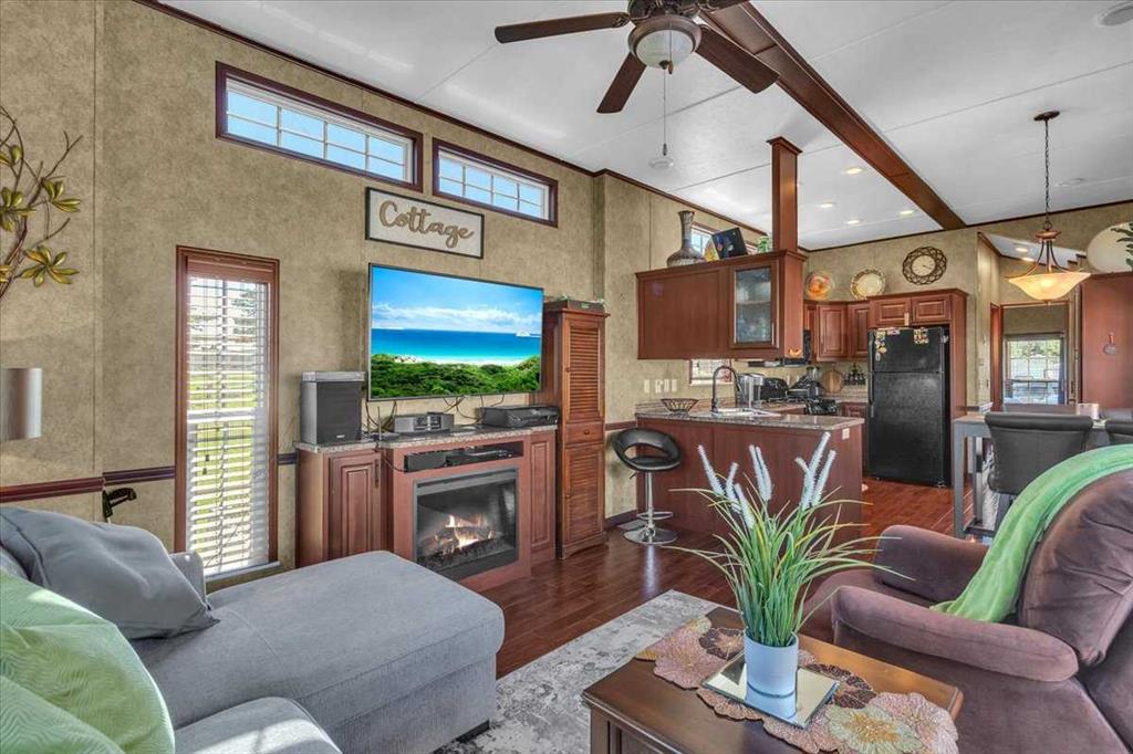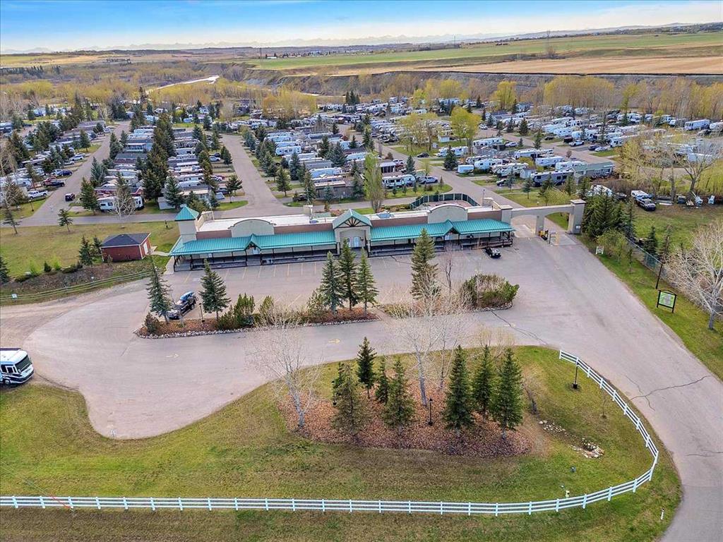 Built in 2013, this newer park model was custom designed-making it a bright and spacious home with lots of space, comes with A/C and best of all-it backs onto manicured green space, making it a quieter and more private backyard. The custom designed kitchen includes full appliances, the bright living room overlooks the private greenspace and the dining room overlooks the private deck. The master bedroom and bath 9with skylight) are a comfortable size and offer lots of storage space. The extended deck features a privacy fence and all the extras go into the storage shed in the back. This package comes with a clubhouse featuring a fitness gym, an outdoor pool and hot tub, laundry facility, a lounge area with pool table, games and books and an auditorium with a stocked kitchenette for larger events for you and your family and friends. You can enjoy the peaceful lifestyle of your home or go for a leisurely walk around the RV Park, or take a stroll along the river or cool off in the out door pool. This complex is within a 10 minute drive to Okotoks or 20 minute drive to the city making it a great summer and fall retreat! This RV Park is open from April 1st to Oct. 31. Each unit has it’s own electrical outlet making the condo fees $185. per month.