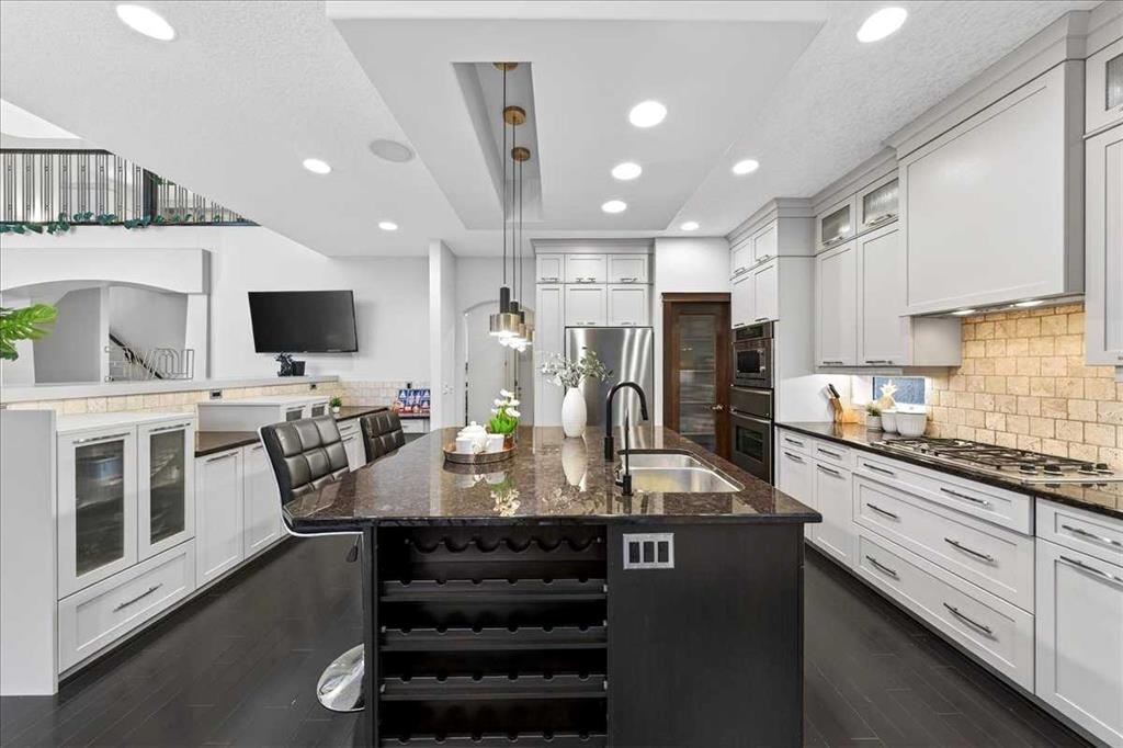 Welcome to this exceptional executive residence nestled in the prestigious enclave of Discovery Ridge, backing onto Calgary’s treasured natural reserve. Surrounded by mature trees, scenic pathways, and just moments from Griffith Woods Park and the Elbow River, this is a home that offers rare privacy, refined design, and an elevated lifestyle. With more than 2,900 sq. ft. of above-grade living space and a fully finished lower level, this beautiful home welcomes you with a sense of openness and grandeur. The impressive living room offers soaring two-storey ceilings and expansive windows overlooking the forest, creating a bright, airy space filled with natural beauty. The heart of the home is the gourmet kitchen, featuring generous cabinetry, expansive prep space, a walk-in pantry, and an inviting breakfast nook overlooking the trees — perfect for everyday living and entertaining alike. A main-floor office, elegant formal dining area, and a functional mudroom with laundry and direct garage access complete the thoughtfully designed main level. Upstairs, the private retreat continues with a spacious primary bedroom offering a luxurious 5-piece ensuite and walk-in closet. Two additional bedrooms, a full bath, a cozy family lounge, and a bright sunroom overlooking the open-to-below living space provide comfort and versatility for growing families or guests. The finished basement adds incredible flexibility with a massive recreation area, additional lounge space, a full 3-piece bathroom, and ample storage — ideal for a home theatre, gym, or games room. Step outside to a serene, tree-lined backyard where nature becomes part of your everyday living. Whether enjoying morning coffee or evening gatherings, the peaceful setting offers unmatched privacy in one of Calgary’s most coveted west-side communities. Located minutes from West Hills Shopping Centre, top-rated schools, downtown access, and extensive trail systems, this is luxury living without compromise. Homes of this caliber in Discovery Ridge are rarely available — this is a true retreat in the city. Book your viewing today!