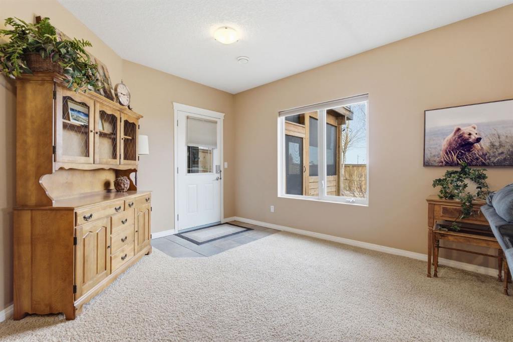 Tucked into a quiet cul-de-sac in the heart of Carstairs, 10 Goddard Circle is the kind of bungalow that feels like home the moment you walk through the door. This warm and inviting fully developed walkout bungalow offers just under 1,400 sq ft above grade, with a bright open-concept layout designed for both everyday comfort and effortless entertaining. The main floor features rich hardwood flooring, soaring ceilings, main-floor laundry, and a thoughtfully designed kitchen/living space that feels airy, connected, and welcoming. With 2 bedrooms up and 2 more down, there’s room here for families, guests, hobbies, or a home office setup that actually makes sense. Downstairs, the fully finished walkout basement adds exceptional versatility with a kitchen setup (not approved to be a legal secondary suite), rough-in for additional laundry, and flexible living potential for multi-generational arrangements or extended guest stays. What sets this basement apart is also the in floor heat, which provides so much warmth to the space during the colder months. This home has been lovingly maintained and offers excellent storage throughout, plus practical upgrades including air conditioning, a heated garage, newer main-floor washer and dryer, and a fridge and microwave replaced within the past five years. Located close to schools, shopping, and all the everyday essentials, this is a beautifully cared-for home in one of Carstairs’ most peaceful pockets—where comfort, function, and location come together seamlessly.