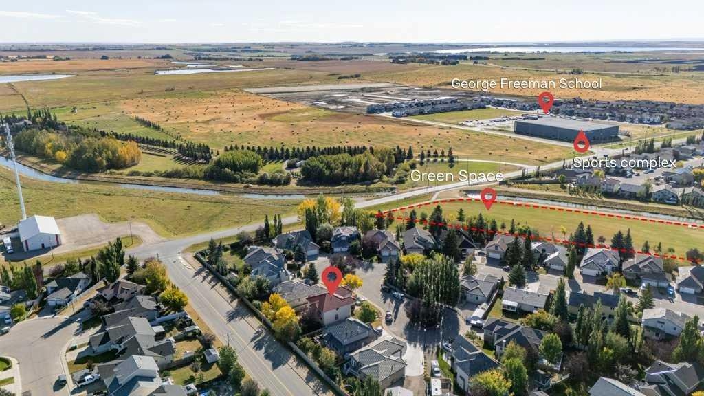 This immaculate, move-in ready home offers over 3,300 sq. ft. of beautifully finished living space in one of Strathmore’s most desirable cul-de-sacs. With a tile roof, stucco exterior, and timeless design, this property has been exceptionally maintained and is ready for its next family. Step inside to a vaulted entrance that opens into a bright, open-concept main floor filled with natural light. The spacious kitchen features granite countertops, a corner pantry, stainless steel appliances, and a sunny breakfast nook overlooking the backyard. The inviting family room is anchored by custom oak built-ins with granite accents, perfect for cozy evenings or entertaining. A convenient main floor laundry, mudroom, and 2-piece bath complete this level. Upstairs, you’ll find a generous bonus room – ideal for a kids’ zone, family movie space, or home office. The primary suite easily accommodates a king bed and offers a full ensuite and walk-in closet. In total, this home provides 5 bedrooms and 3 full bathrooms, giving everyone their own space. The professionally finished basement, developed by the builder, adds even more living and storage options. Outdoor living is made easy with a deck (with gas line for BBQ), underground sprinklers, and mature landscaping. Additional highlights include: dual furnaces, dual hot water tanks, and a reverse osmosis system. All this in a prime location: tucked away on a quiet cul-de-sac, just steps from parks, playgrounds, the new rec centre, and walking/biking paths. You’ll love the small-town charm of Strathmore with the convenience of easy access to Calgary for commuters. A rare opportunity to own a large, well-appointed family home in a highly sought-after neighbourhood – don’t miss it!