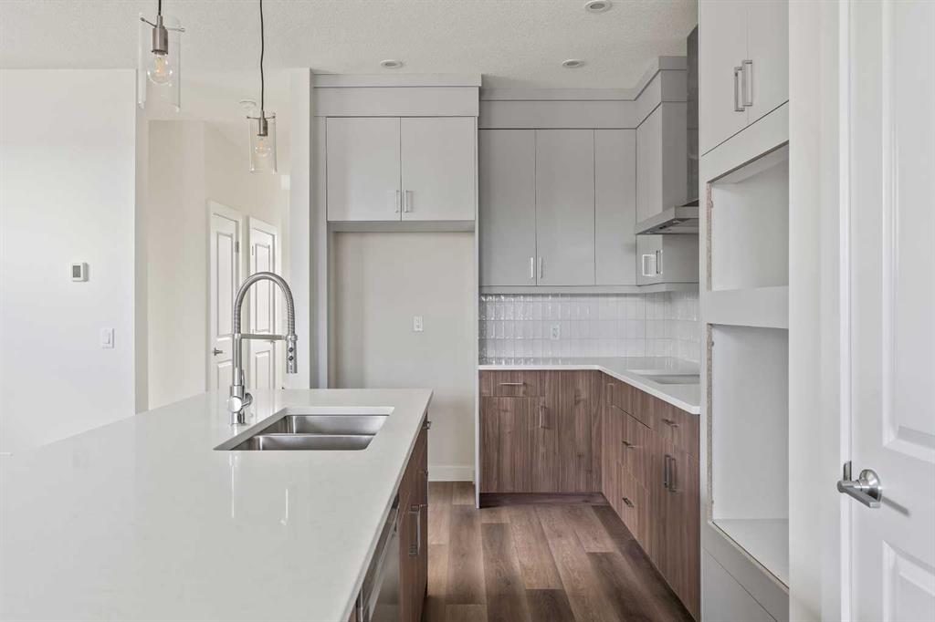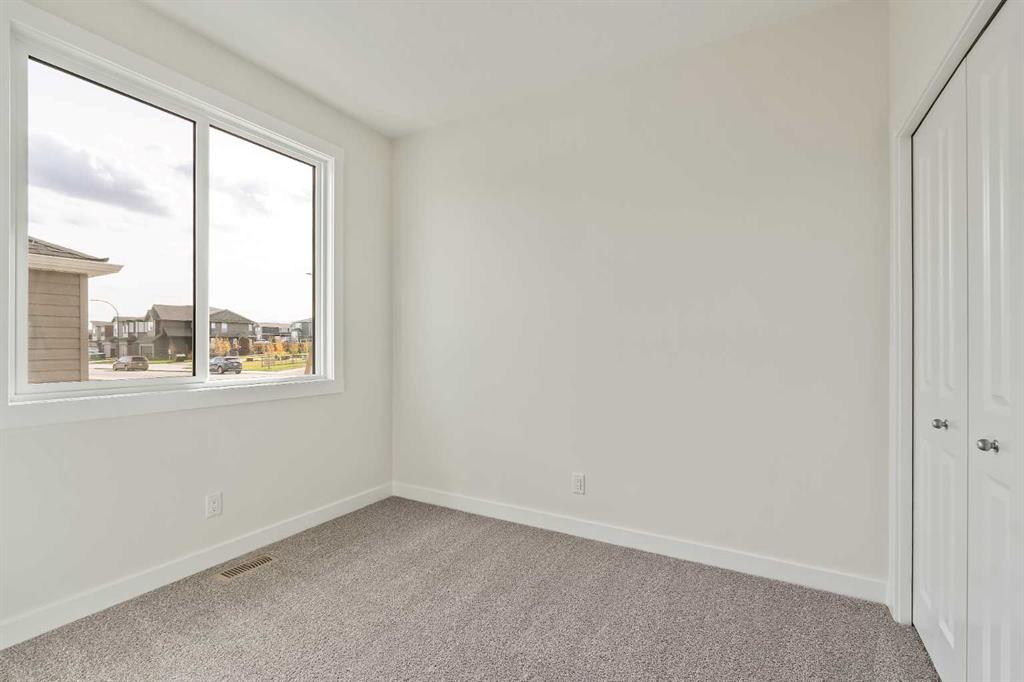 Welcome to The Oxford by Brookfield Residential – a beautifully designed, fully detached home in the vibrant master-planned community of Livingston that includes a double detached garage! Perfectly blending contemporary style, functional living, and timeless design, this home offers 4 bedrooms and 3.5 bathrooms above grade, spread over nearly 2,000 sq. ft. of meticulously crafted space plus a full basement with a private side entrance for incredible flexibility or future suite potential (subject to local municipal approval). With over 3,000 sq. ft. of total potential living space, this home provides the perfect balance of comfort, space, and future opportunity. The open-concept main floor is bright and airy, highlighted by oversized windows and a seamless connection between the kitchen, dining area, and great room, making it perfect for entertaining or everyday family life. The kitchen is a true centerpiece, showcasing stainless steel appliances including a gas cooktop and chimney hood fan, full-height cabinetry, quartz countertops, and a large pantry for added storage. The expansive great room at the front of the home spans the entire width, filling the space with natural light and a welcoming energy. A main-level bedroom with a full ensuite makes this the perfect layout for those wanting multi-generational living. On the upper level, a central bonus room separates the luxurious primary suite from the secondary bedrooms, creating both privacy and flow. The primary bedroom includes a large walk-in closet and a 4-piece ensuite with dual sinks and a walk-in shower. Two additional bedrooms, a full bathroom, and a conveniently located laundry room complete the upper level. The basement, with its private side entrance, awaits your vision – perfect for a future legal suite (subject to city approval), a gym, media room, or additional living area. With ample space for a large living room, bedroom, and bathroom, the possibilities are endless. Outside allows for flexible yard space and already includes a 20’x22′ detached double garage that will keep your vehicle and valuables safe all year long! Located in Livingston, one of Calgary’s most sought-after new communities featuring parks, playgrounds, the Livingston Hub, and quick access to Stoney Trail and major amenities, this is a home that truly has it all. Backed by Brookfield Residential’s comprehensive builder warranty and the Alberta New Home Warranty Program, you can purchase with confidence knowing your investment is secure.
