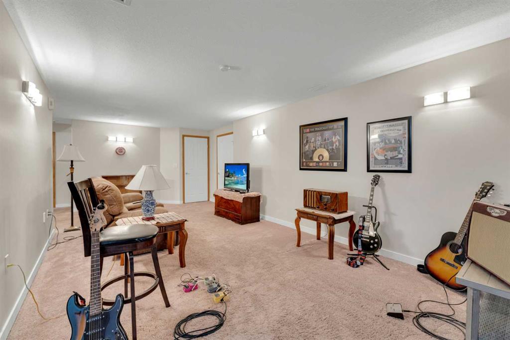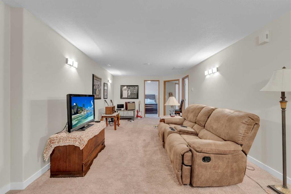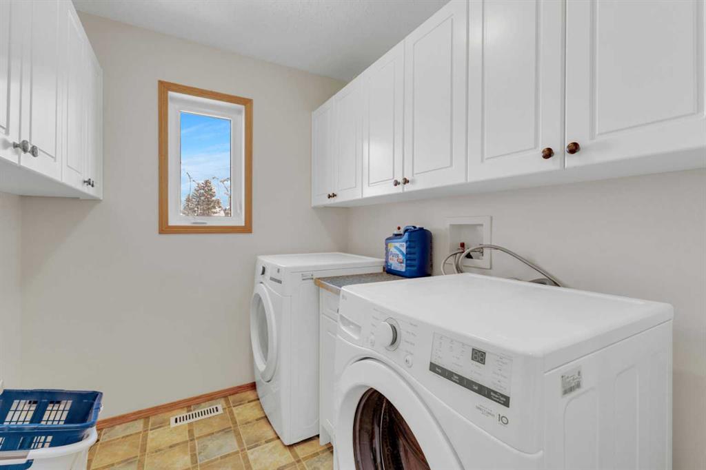 This beautifully custom built home is ideally located in a desirable, upscale neighborhood and offers an exceptional combination of a well planned layout and inviting living spaces. Step inside and be welcomed by the bright open concept featuring a spacious kitchen, dining and living area. Numerous large windows and skylights fill the home with natural light, creating a warm and inviting atmosphere throughout. The generous primary bedroom includes direct access to the rear deck, an oversized walk in closet and a private 4 pce ensuite featuring a walk in tiled shower. The main floor also offers a second bedroom, a convenient 4 pce bathroom and well situated laundry room designed for everyday ease. The fully developed basement provides excellent additional living space with two more bedrooms, a large family room, a 4 pce bathroom and a substantial storage. Both the basement and insulated attached garage feature comfortable in-floor heating, making the home cozy year-round. Central air conditioning ensures cool and comfortable summers. Situated on a corner lot, the exterior offers two tiered covered deck with low maintenance railings and a concrete RV parking pad. The covered front deck is a fantastic place to relax and enjoy the summer months, complete with privacy blinds for added comfort and seclusion. This property presents a wonderful opportunity to enjoy spacious living in a sought-after neighborhood close to everyday amenities. Call today to book your private tour!!