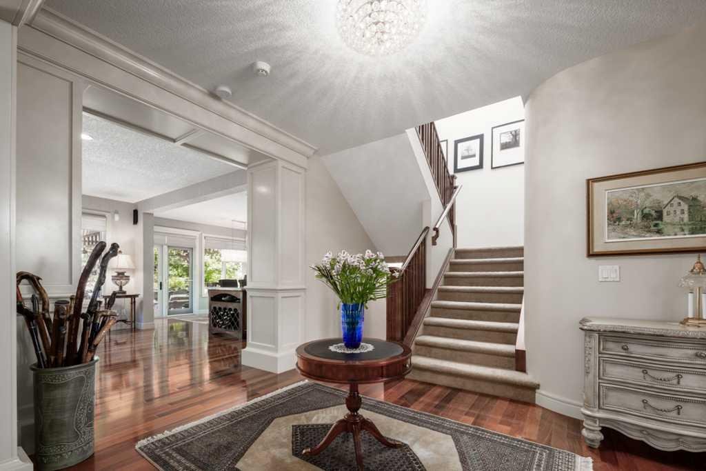 From the moment you enter, you’ll be impressed by the home’s refined elegance—exotic Cumaru hardwood floors, impeccable custom millwork, and built-in maple cabinetry throughout. The grand foyer, featuring a custom walk-in closet, flows seamlessly into an expansive, naturally bright family room framed by large windows that overlook the beautifully landscaped, lush backyard.