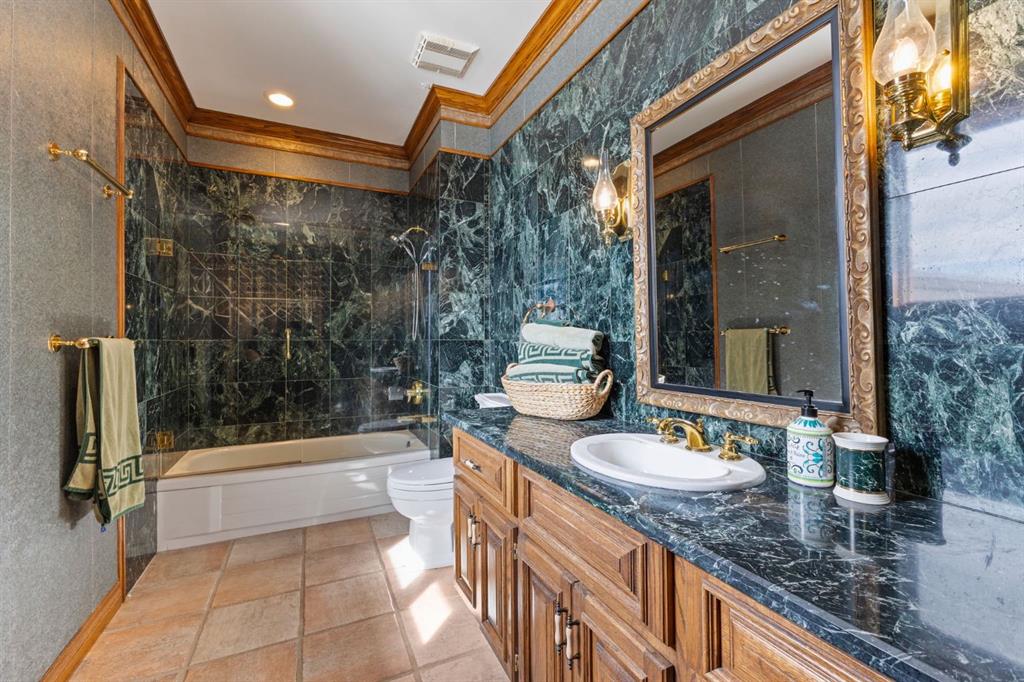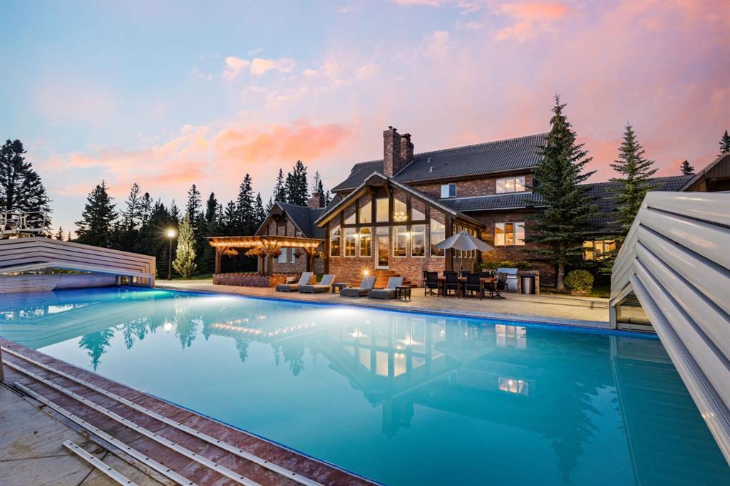 At its heart lies a custom-built, European-style two-story residence, thoughtfully designed for both luxury living and recreation. Spanning over 8,000 sq. ft., the stately brick residence features seven bedrooms and 7.5 bathrooms, including five en-suites. The home offers a formal study, an elegant dining room, a main-floor primary suite (with an additional primary suite on the second level), and private nanny quarters. A stunning sunroom with floor-to-ceiling windows provides an idyllic space to take in the breathtaking views of the pool and Rocky Mountains.