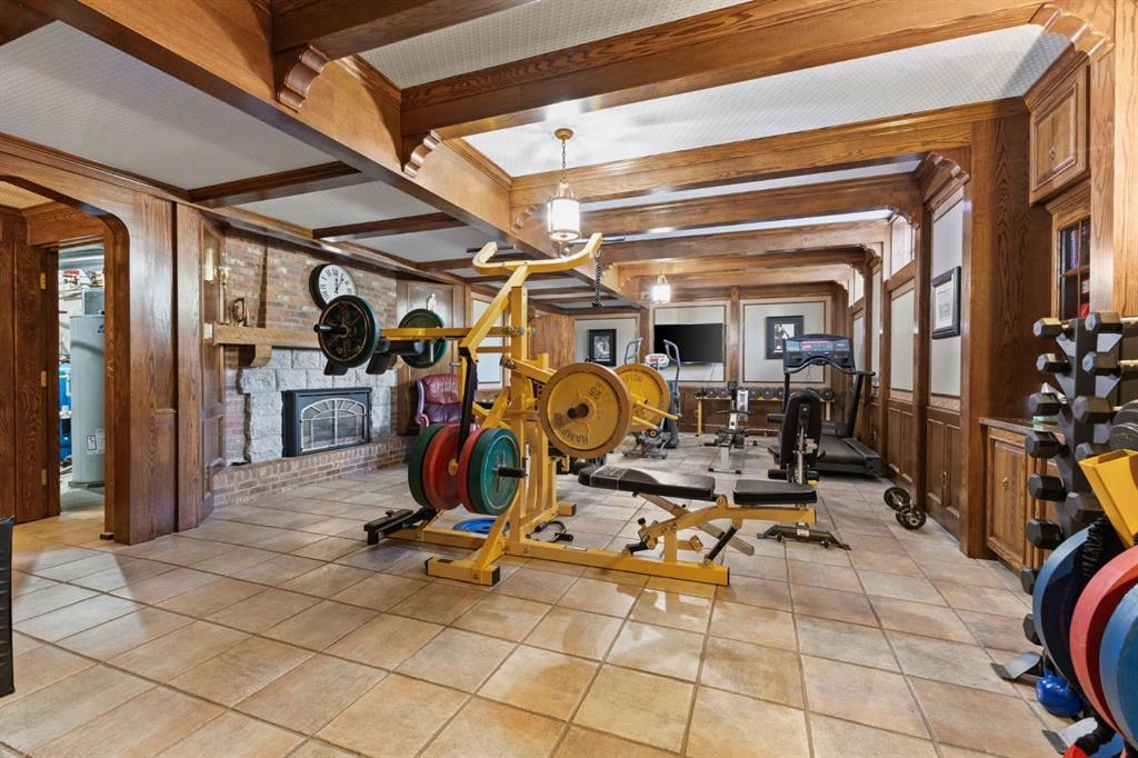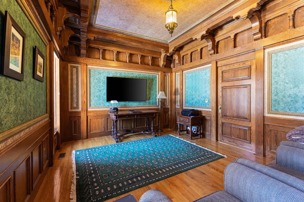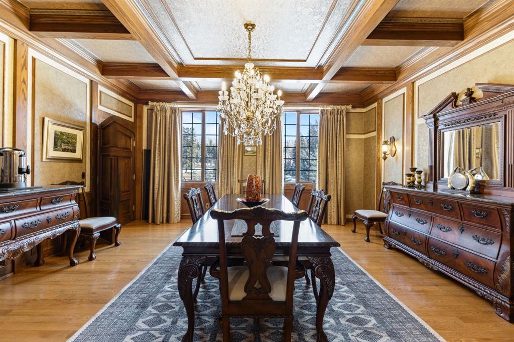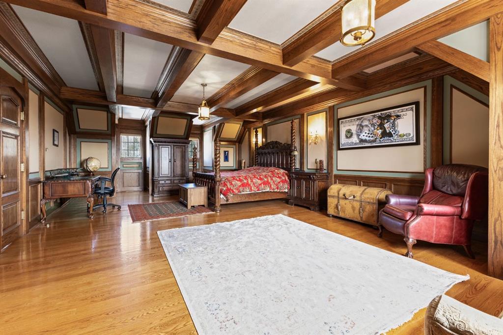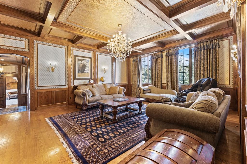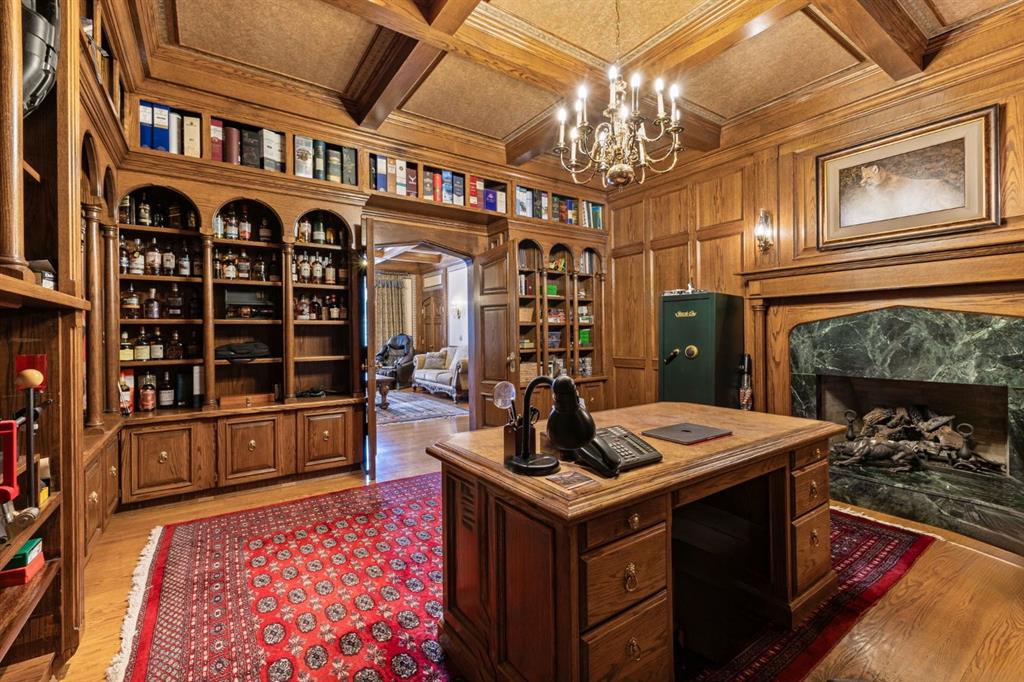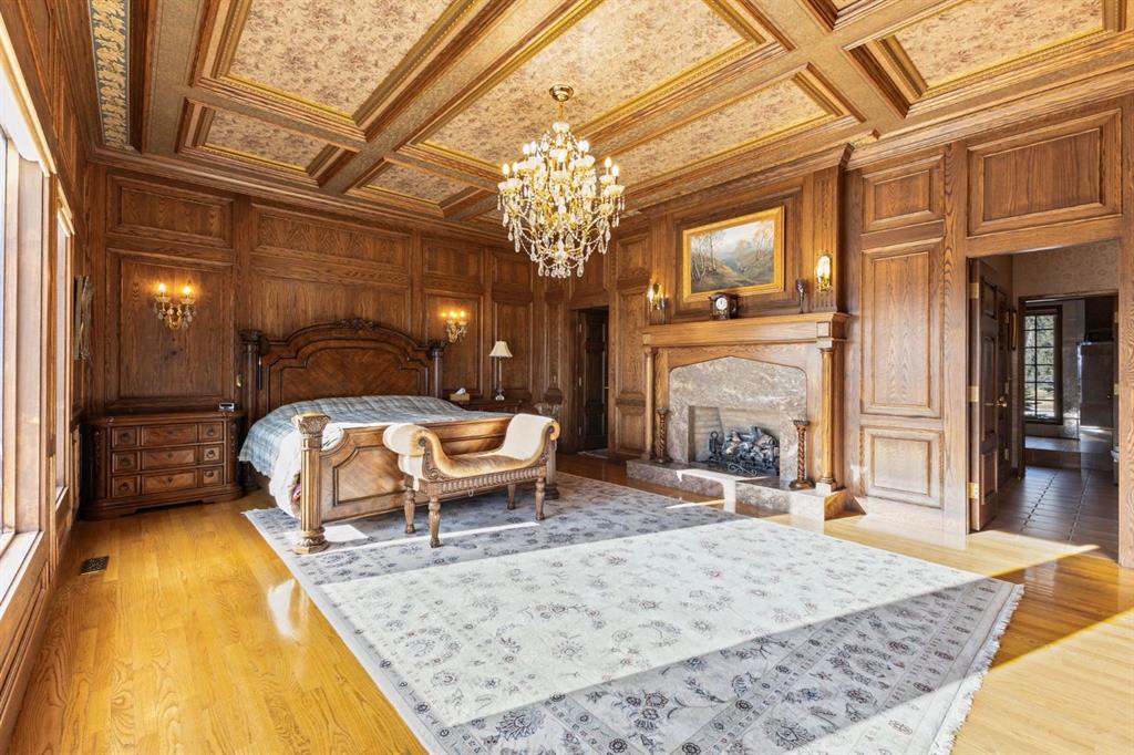 Meticulously crafted with exceptional detail, the home showcases custom hand-carved woodwork, coffered ceilings, four fireplaces (one wood-burning and three gas), and a combination of hardwood and custom tile flooring. Italian marble finishes add a touch of sophistication to most bathrooms.