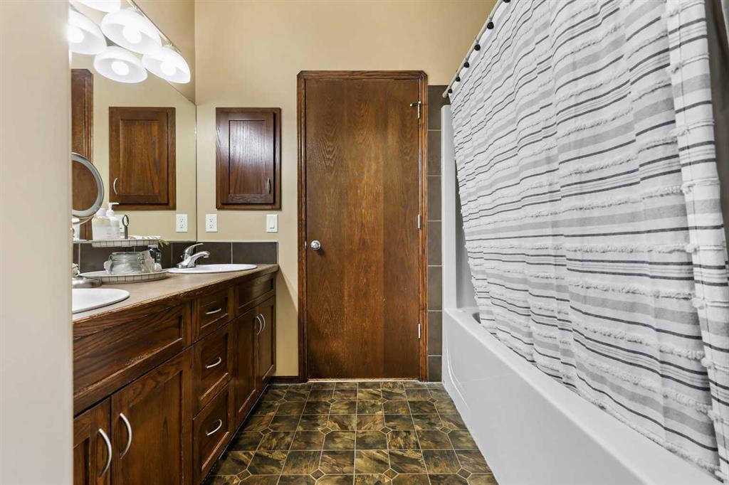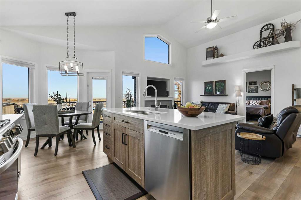Featuring a triple-car garage with an east-facing driveway and plenty of parking space, this two-storey split design combines the luxury of bungalow-style living with the privacy of an upper level that includes two additional bedrooms and a 4-piece bathroom — ideal for family or guests. The main floor is open concept, designed for both everyday living and entertaining. The kitchen was beautifully renovated in 2022, showcasing quartz countertops, a gas stove, a large island, and stunning west-facing views. A cozy gas fireplace adds warmth and ambiance to the living area, creating the perfect space to relax and unwind. The primary bedroom is a true retreat, featuring a spacious walk-in closet, a 5-piece ensuite, and gorgeous west-facing views of the surrounding landscape. The fully finished walkout basement offers incredible versatility with a bedroom, 3-piece bathroom, a den, a bar area with plumbing ready for a wet bar, a large family room, and a spacious utility room with built-in storage. Step out to your private walkout patio, already wired for a future hot tub — the perfect spot to unwind at the end of the day. The landscaped yard includes underground sprinklers and a storage shed, making outdoor living both beautiful and easy to maintain. Living in Hillview means enjoying space, privacy, and sweeping views — all in a welcoming community. Contact your agent today to schedule a private tour of this beautiful home!