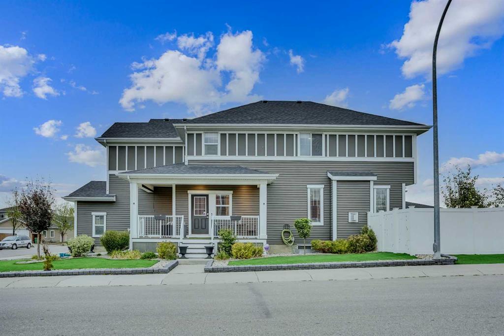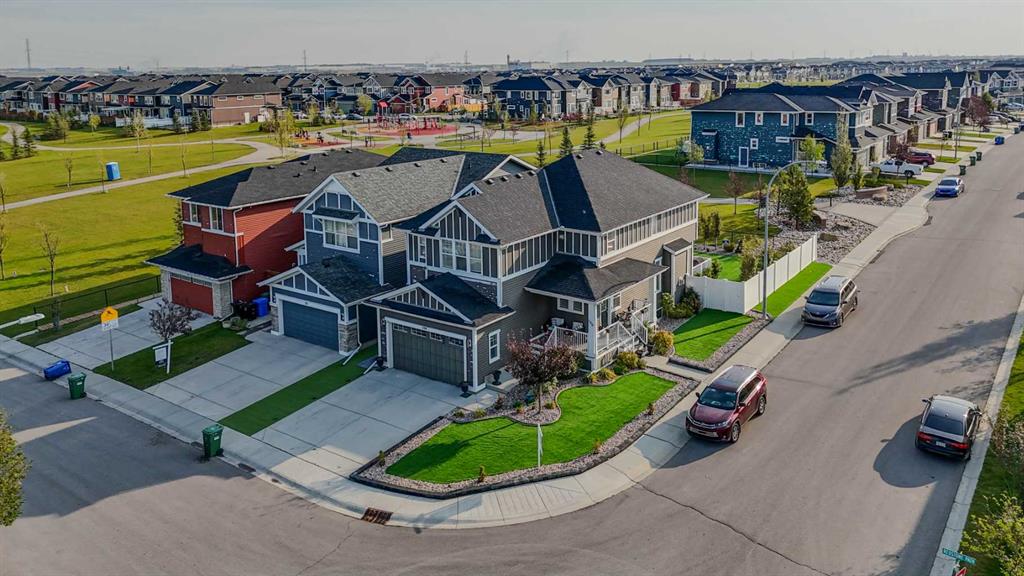 Welcome to this exceptional, executive two-storey home by Jayman, ideally situated on a desirable corner lot backing onto green space in Redstone. Meticulously maintained, this impressive residence offers over 3,400 sq. ft. of developed living space, featuring 5 bedrooms, 3.5 bathrooms, and 25 windows dressed with Hunter Douglas coverings, providing abundant natural light throughout.