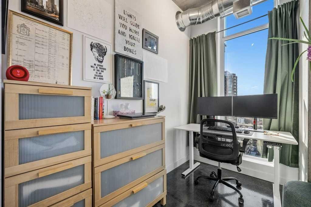 Experience vibrant inner-city living in this striking modern condo at Nude by Battistella, perfectly positioned in Calgary’s coveted Beltline community. This stylish unit offers an exceptional opportunity for both first-time buyers and investors seeking a turnkey property in one of the city’s most walkable and dynamic neighbourhoods. What truly sets this opportunity apart is that Nude is an Airbnb-friendly building, offering incredible flexibility for investors and owners! Step into a thoughtfully designed layout featuring soaring ceilings and expansive floor-to-ceiling windows that flood the space with natural light while showcasing impressive city views. The sleek industrial-chic aesthetic is defined by polished concrete floors, exposed structural elements, and contemporary finishes that create a bold yet welcoming interior. The modern kitchen boasts quartz countertops and stainless-steel appliances, blending form and function for effortless everyday living. Enjoy the convenience of in-suite laundry and a full four-piece bathroom, while the private balcony with a gas hookup expands your living space outdoors — ideal for morning coffee or evening BBQs. Residents of Nude by Battistella benefit from an impressive suite of lifestyle amenities including a rooftop patio with social spaces and panoramic skyline views, a resident lounge and games room, secure bike storage, and direct access to a vibrant streetscape filled with trendy restaurants, boutiques, cafés, and nightlife. The location offers unbeatable connectivity — only minutes to downtown, transit, and major pathways — making urban living effortless. Stylish, smartly appointed, and perfectly positioned — this is city living redefined. Live the Beltline lifestyle you’ve been dreaming of.