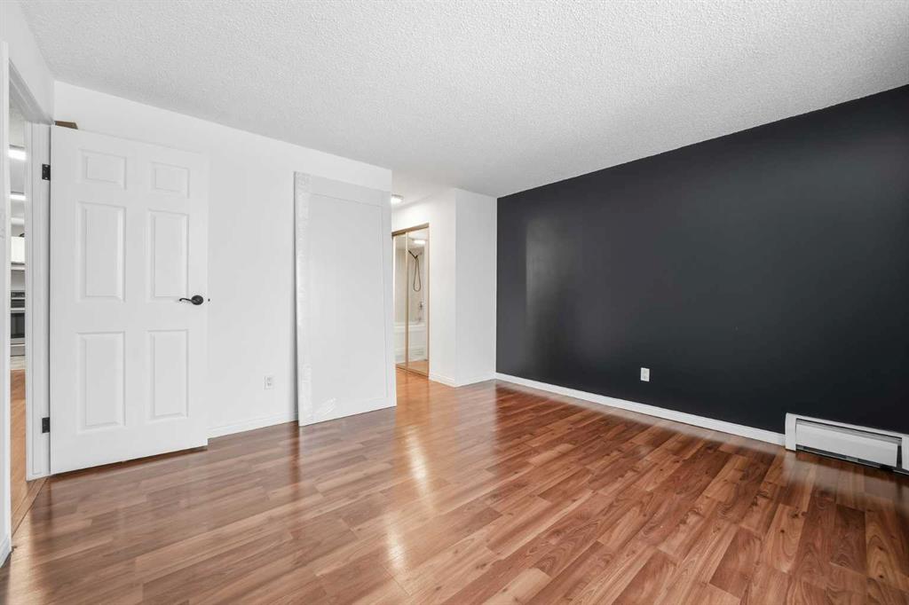 Bright corner two bedroom condo in The Huntsman filled with natural light from the south and east facing windows. The enclosed sunroom offers a great space to unwind and relax at the end of the day. Features include upgraded laminate flooring, an open kitchen with stainless steel appliances and tile backsplash, and a separate dining area. The unit also offers a spacious primary bedroom, good-sized second bedroom, 4-piece bathroom, in-suite laundry, and in-suite storage room, plus the convenience of underground parking. The building also has a gym with a sauna, a courtyard for entertaining, gardening area and a pickleball court. Excellent location close to transit, restaurants, and coffee shops just steps away. Only four blocks to the Sunalta C-Train station with a bus stop right outside the building, making commuting easy. A great opportunity for first-time buyers, investors, or anyone looking for a place to call home.