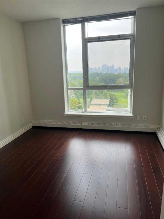 Enjoy spectacular views of downtown Calgary and Shaganappi Golf Course from this bright, air-conditioned two-bedroom, two-bathroom corner unit. Featuring titled underground heated parking stall, this spacious home offers a formal dining area, a large living room with a cozy fireplace, and a functional kitchen and a generous window for natural light. Step out onto the east- and south-facing balcony—perfect for soaking in the sunshine all day.