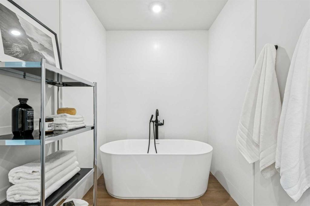The serene primary suite offers a luxurious escape, complete with expansive windows, a spacious walk-through closet, and a spa-inspired ensuite featuring heated floors, a free-standing soaker tub, shower, and dual vanity. Two additional well-proportioned bedrooms and full bathrooms provide exceptional flexibility for family, guests, or a stylish home office.