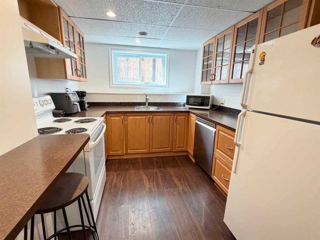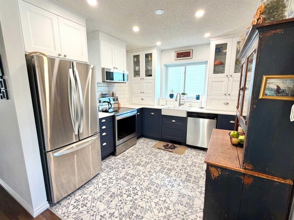 INCOME POTENTIAL in this wonderfully renovated split level! You will be welcomed into this 5 bedroom home with plenty of bright natural light from the newly upgraded vinyl windows. Upon entering you will immediately notice the attention to detail throughout the renovation of the main floor; touting new cabinetry, designer tile, a barn house sink and upgraded appliances. The open concept kitchen and dining area is a brilliant use of space providing comfort and continuity. Down the hall you will find two nicely sized east facing bedrooms each appointed with large closets. The main floor bathroom, which has had a complete makeover, includes a european style shower, automatic ventilation fan, heated tile flooring as well as a vessel style vanity sink. Finishing off the main floor is a spacious laundry room that easily doubles as a flex space suitable for an office, or hobby space. The updated, big and bright front door entry, offers separate access to a full basement suite, boasting 2 bedrooms, a well thought kitchen and living space and its own separate kitchen and laundry The property boasts a fully fenced, xeriscaped yard, an oversized heated detached garage (24×28), even a concrete pad to park your RV! Call today to book your showing!
