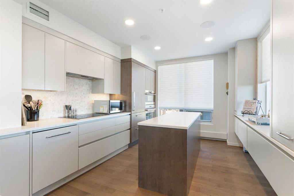 Thinking about downsizing but everything is too small? Welcome to The Grandview, where luxury living meets breathtaking views in the heart of Calgary’s Mission neighborhood. This spacious 2 bedroom, 2 bathroom, 2 underground parking stalls plus DEN unit has had a half a million dollar renovation completed by Paul Lavoie Interior Design. Every inch of the unit has been updated. The custom kitchen boasts quartz countertops and top-of-the-line appliances, including brands such as Wolf, Sub-Zero, and Miele, pantry and island creating a chef’s haven. All custom cabinets, millwork and closet organizers throughout the condo were completed by Empire Kitchen and Bath. The bright spacious living room has River Valley views from every window, a custom fireplace plus access to 2 huge decks. The dining room features custom built-in storage. The primary suite is a sanctuary of its own featuring downtown views, spacious walk-in closet and luxurious 5 pc master bathroom that includes a huge walk-in shower, double vanities and impressive stand alone tub. The 2nd bedroom is adjacent to the main bathroom. The den has a built-in desk and storage plus lots of flex space for a home gym. Enjoy beautiful engineered hardwood throughout the main living area. Other features include: Full laundry room with sink, grand foyer, in-suite storage & separate storage room plus Control 4 home automation. The Grandview boasts a range of amenities including The Lang House, a heritage home perfect for hosting, as well as another party room in the complex with a full kitchen that is great for social gatherings. The outdoor courtyard is great for BBQ’s and enjoying nature. Enjoy the best 24/7 concierge service, 2 elevators, 2 guest suites, visitor parking and car wash. The location is second to none…easy walking distance to the endless amenities on 4th street, the Glencoe Club and Safeway. Right outside your front door you have the Elbow River walking path. Don’t miss this special opportunity, carefree lock and go living.