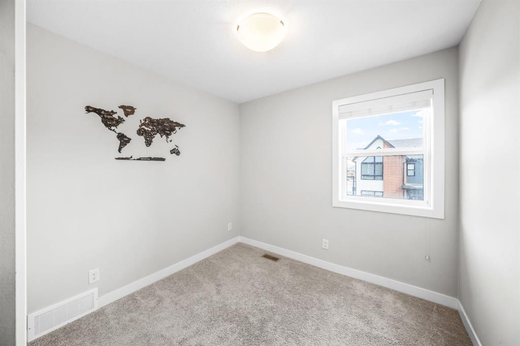 Upstairs, you will find three well sized bedrooms, a rare and highly desirable layout for townhomes in this price range. The primary suite stands out with vaulted ceilings, a generous walk through closet, and a four piece ensuite with double vanity. A full bathroom and upper level laundry complete the second floor.