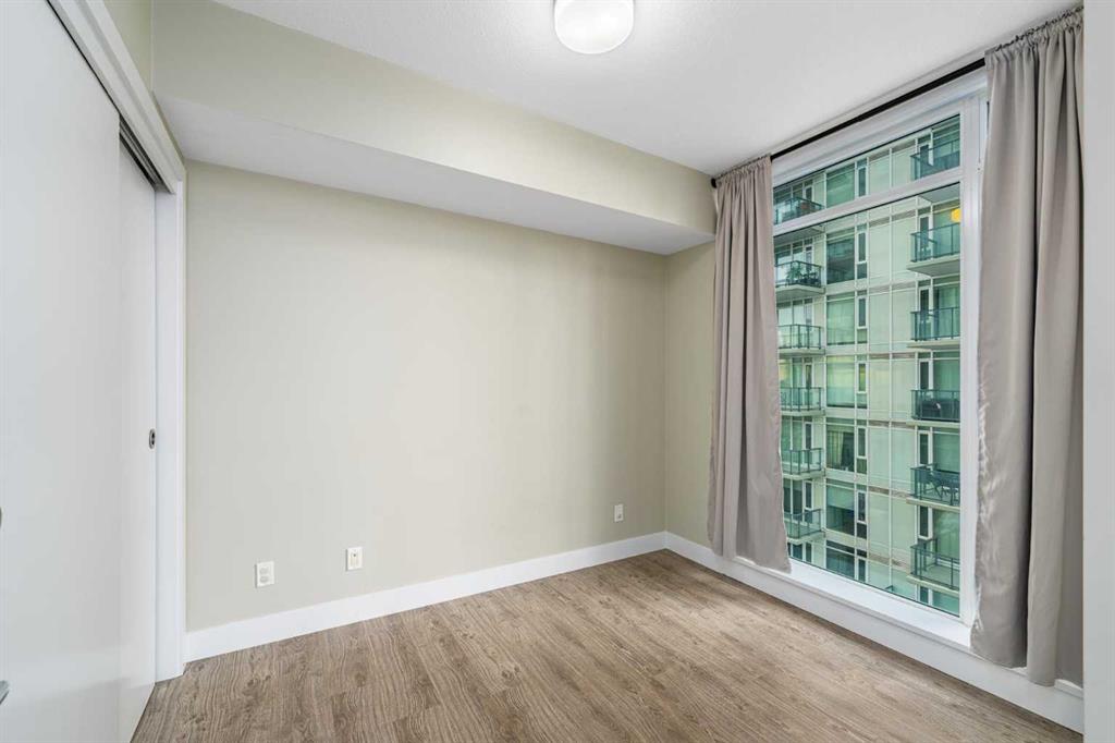 The primary bedroom offers a spacious layout with stunning city views, sliding-door closets, and a sleek ensuite. The second bedroom is thoughtfully positioned for privacy, ideal for a roommate, guests, or a stylish home office.