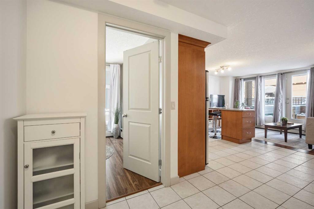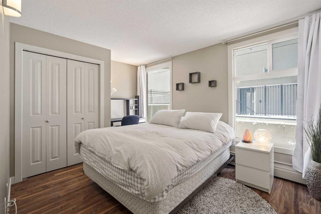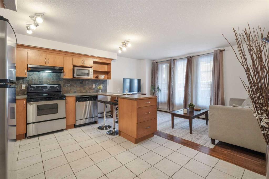 This BRIGHT END-UNIT, 1 bedroom + 1 bathroom MAIN FLOOR condo offers MOBILITY-FRIENDLY access & an EXCEPTIONAL OUTDOOR LIVING SPACE rarely found in inner-city condos. Featuring TILE & LAMINATE flooring throughout, the open-concept layout connects the kitchen & living area for easy everyday living & entertaining. The kitchen peninsula includes BUILT-IN DINING, maximizing both functionality & space. FRESHLY PAINTED throughout the main living area, the home also offers excellent storage including a large walk-in closet off the entry plus a separate closet with IN-SUITE LAUNDRY offering additional storage. The spacious bedroom features two LARGE WINDOWS, a generous closet, & a flexible nook ideal for a desk, or dresser. The 4-piece bathroom is finished with tile flooring for a clean, modern feel. Step outside to one of the condo’s standout features—an incredibly LARGE PATIO complete with RAISED GARDEN BOXES & plenty of space for lounging, BBQing, and OUTDOOR DINING, creating a true extension of your living space. Additional highlights include SECURED GATED PARKING, a separate STORAGE LOCKER, & dedicated BIKE STORAGE. Located in the heart of the Beltline, you’re just steps from restaurants, cafes, shopping, parks, and downtown amenities, making this an ideal home for first-time buyers, investors, or anyone seeking vibrant inner-city living.