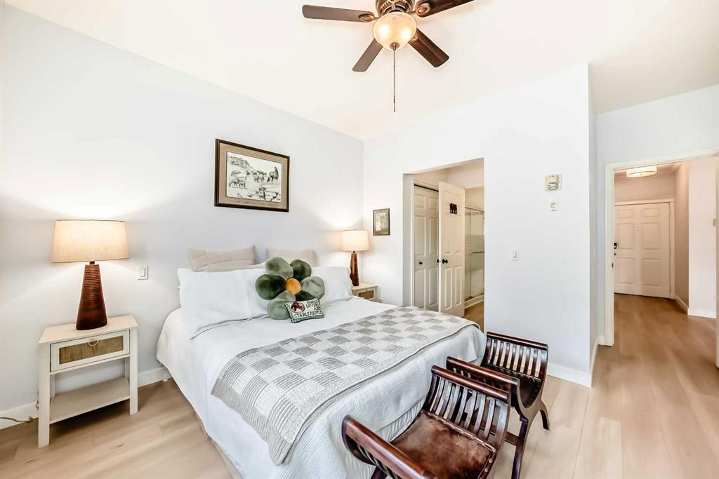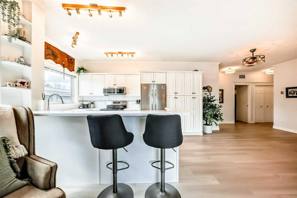 Your search stops now! Welcome home to this quiet, pet-friendly, 45+ building, where a spacious and turnkey 2 bed 2 bath unit in the highly desirable area of Olde Town Okotoks awaits you. Enjoy walking distance to many shops, cafes, restaurants and riverside pathways. Lovingly updated, this gem has over $40,000 in renovations in the last year including new LVP flooring, stainless steel appliances, new washer and dryer, kitchen countertops, a new kitchen sink and faucet, new bathroom vanities, new toilets, and all light fixtures. Behind the scenes you also have a new furnace heating system and hot water heater. Plenty of windows to let in the eastern morning sun and it stays nice and cool in the summer without the need for AC. Take advantage of the large ground-floor walkout patio with a lockable fenced deck, steps from your assigned covered parking space with plug-ins – easy access to the street and no waiting for the elevator! Ample street parking and seven private visitor parking spots are available. Fall in love with the charm of downtown Okotoks and indulge in the many events and festivities year round right outside your doorstep that make it a wonderful place to live.