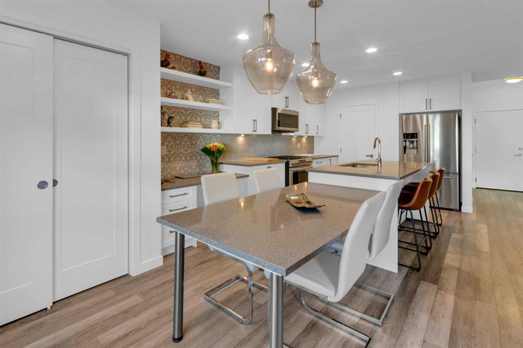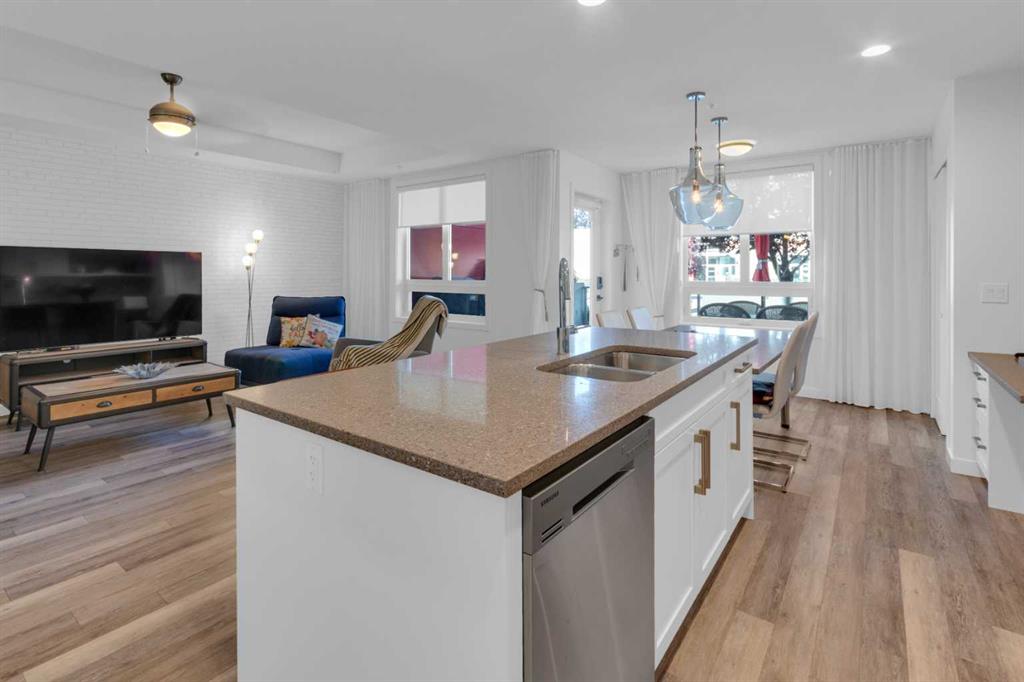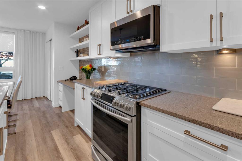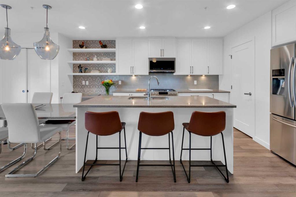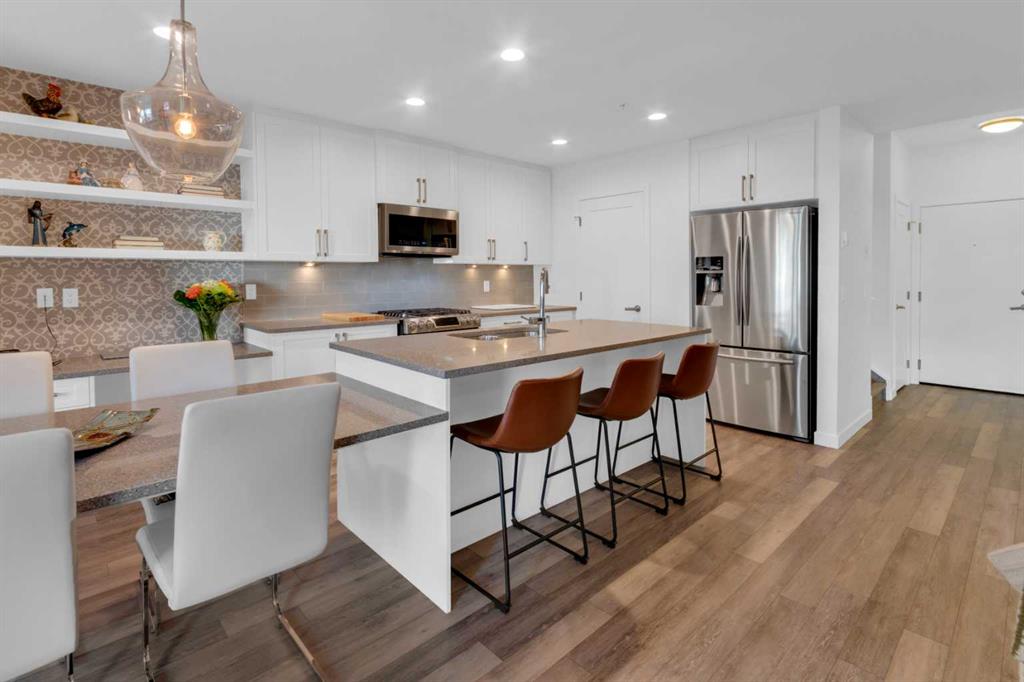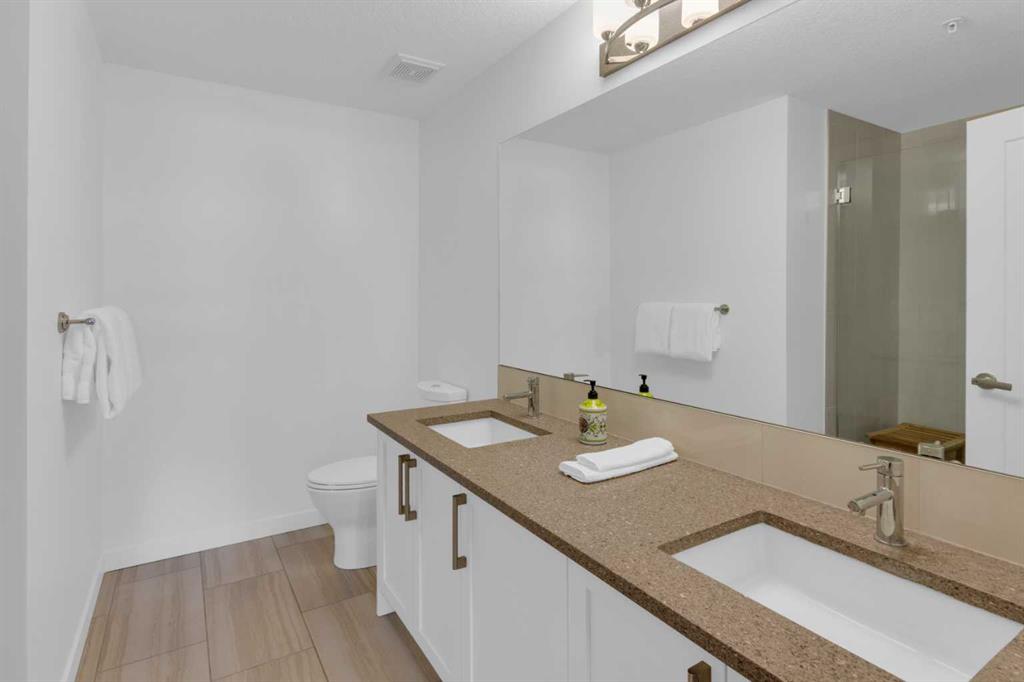 Enjoy modern living in this stunning 2-level, 2-bedroom, 2.5-bathroom home in sought-after West Springs. With 1,310 sq. ft. of thoughtfully designed space, this property blends style and function with 9-ft ceilings, radiant in-floor heating, and luxury vinyl plank flooring throughout. The chef’s kitchen features a gas range, quartz countertops, upgraded stainless steel appliances, a large eating bar, walk-in pantry, and a built-in tech nook—perfect for both daily life and entertaining. The open layout connects seamlessly to the dining and living areas, while two private outdoor spaces—a large 300 sq. ft. ground-level patio and a private balcony off the primary suite—offer the ideal setting for morning coffee or summer BBQs. Both bedrooms act as private suites with their own bathrooms and walk-in closets, providing flexibility for family, a roommate, or a home office. The primary retreat is complete with a spa-inspired ensuite and private patio for your own oasis. Pet-friendly and practical, this home includes 2 parking stalls (one heated underground, one above ground) plus a storage locker. Well-managed with a healthy reserve fund, you’ll enjoy peace of mind alongside a vibrant lifestyle. Walk to shops, cafés, and restaurants, explore nearby parks and Paskapoo Slopes, or take advantage of the ever-growing West District just minutes away. Only 20 minutes to downtown and an hour to the mountains, this West Springs gem truly checks every box.