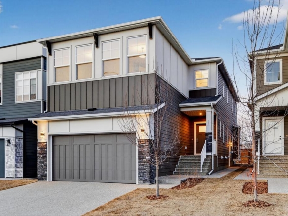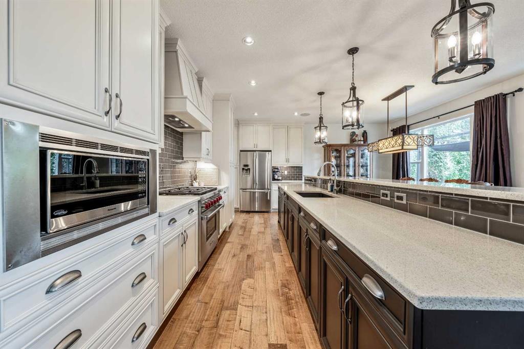 * Open House Sunday, Jan 25 10AM-12PM* Welcome Home! This immaculate Estate Home is located in Rockford Estates, on a quiet and family-friendly street in the sought after community of Rocky Ridge! This 2013 build boasts over 3400 sq ft of living space. Stepping into this elegant home, you are greeted with a grand foyer that’s spacious and open to above, with lots of space to greet your guests. There is beautiful hand-scraped, engineered, wide-plank hardwood flooring throughout the main floor. Wander through the den and into the upscale gourmet kitchen featuring a large island with a raised bar to have your guests sit at, granite countertops, tons of cupboard and counter space, upgraded stainless steel appliances and a designer Wolf 6 burner gas stove! If you love cooking you will love this kitchen! With 9′ ceilings, the open floor plan incorporates a dining room and living room off of the kitchen, great for hosting dinner parties! The main floor is capped off with a large mud room that incorporates the laundry room and a powder room. Head upstairs to the bonus room with large windows that lets all the natural light in. Walk down the hall to the spacious primary bedroom, with more large windows and tons of space – your own personal oasis! The ensuite has two vanities, tub, shower and 2 walk-in closets. There are 2 more good sized bedrooms and a 4 piece bathroom that finishes off the upper floor. The basement has a great spot to watch movies on the large projector with the family. No reason to go upstairs with the amazing wet bar – make your popcorn and have your drinks at the amazing custom wood countertop. There is also a large bedroom and a 4 piece bathroom on this level. Finally, step out into the amazing backyard, with large deck and hot tub – great for BBQ’ing and having friends and family over! Lots of mature trees makes it private and the large pie-shaped lot gives you tons of space to play with the kids or let the dog lounge. Kick up your feet and make some smores around the fire pit, in this quiet and serene yard! If you like being outside this backyard is for you! The YMCA, schools, shopping and restaurants are all just steps away. This beautiful neighbourhood has lots of bike paths, walking trails and is a short hop to the mountains. You don’t want to miss out on this one!