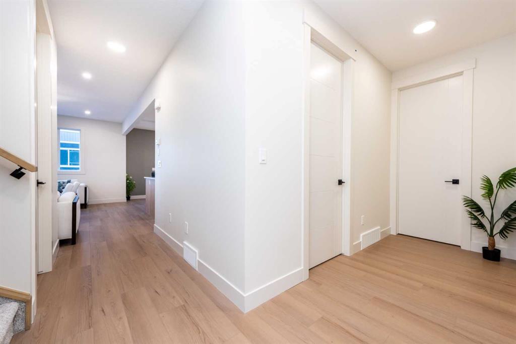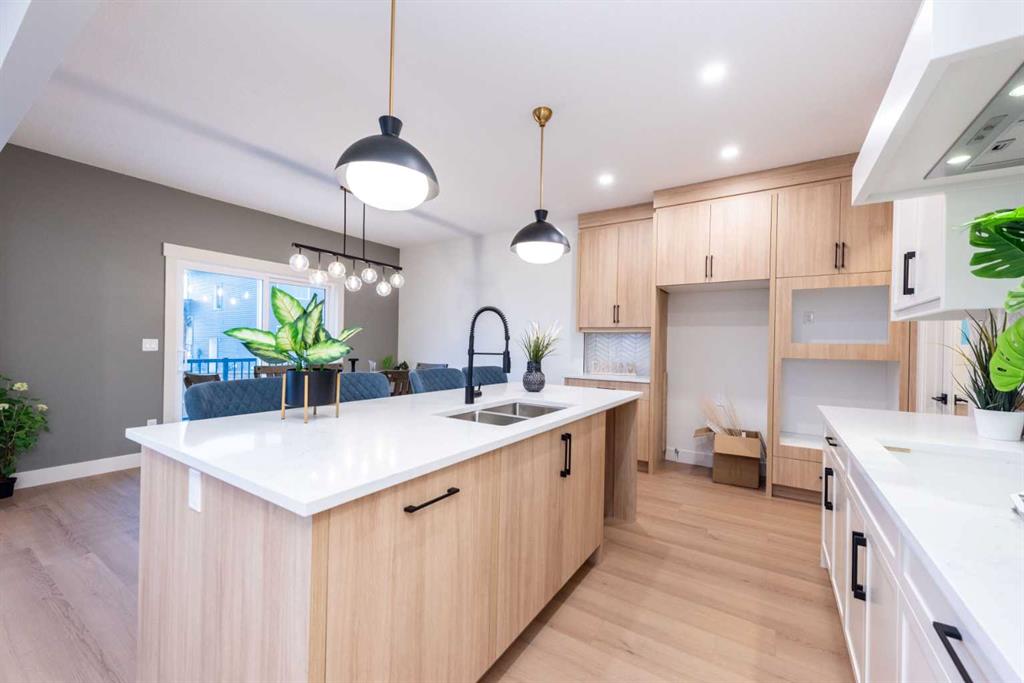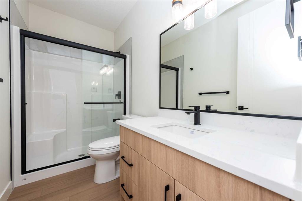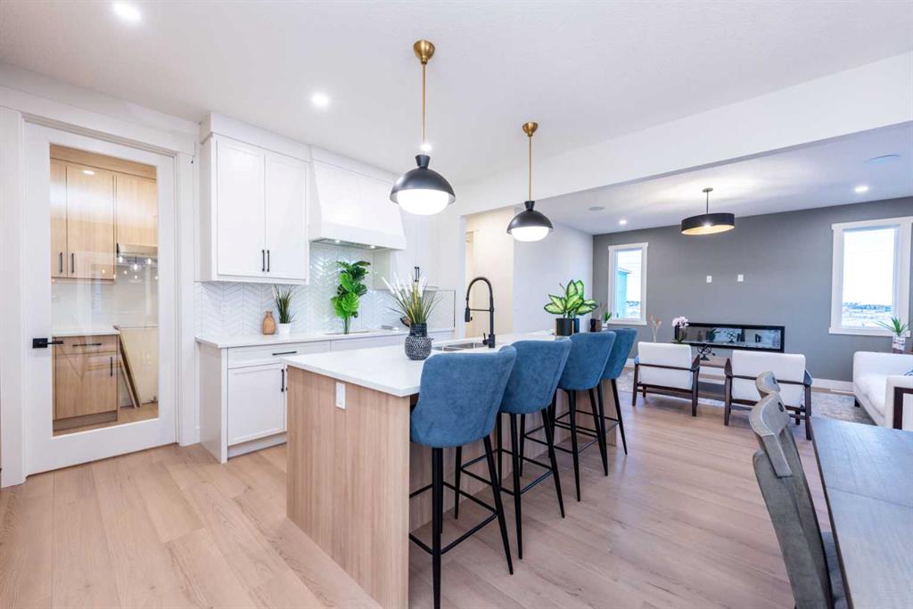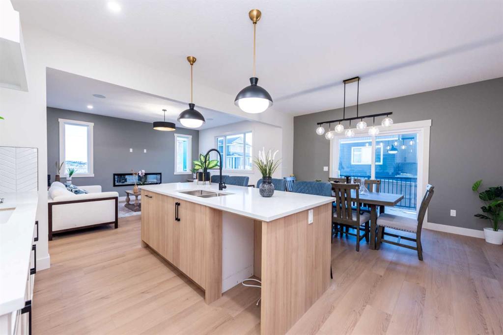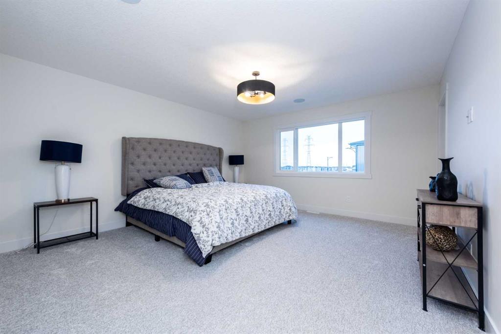 Welcome to this stunning and thoughtfully designed home, located in the highly sought-after Waterford community of Chestermere. Situated on a wide corner lot, this residence offers over 2,600 sq ft of beautifully appointed living space, perfect for growing families or multi-generational living. Step through the grand entry into a bright and spacious main floor that features a full bedroom and 3-piece bathroom ideal for guests or extended family. The heart of the home is the open-concept kitchen, complemented by a large, fully enclosed spice kitchen with direct access from both the mudroom and main kitchen, providing the ultimate convenience for culinary enthusiasts. Upstairs, you’ll find four well-sized bedrooms, including a luxurious primary suite with a spa-inspired ensuite and walk-in closet, as well as a second master suite with its own private ensuite. A large bonus room and an upstairs laundry room add practicality and comfort to this upper level. The unfinished basement offers exceptional potential, with a separate side entrance that allows for the development of a legal basement suite or custom space tailored to your needs. Located just minutes from schools, parks, shopping, and all amenities, this is an incredible opportunity to own a versatile and spacious home in one of Chestermere’s fastest-growing neighbourhoods.