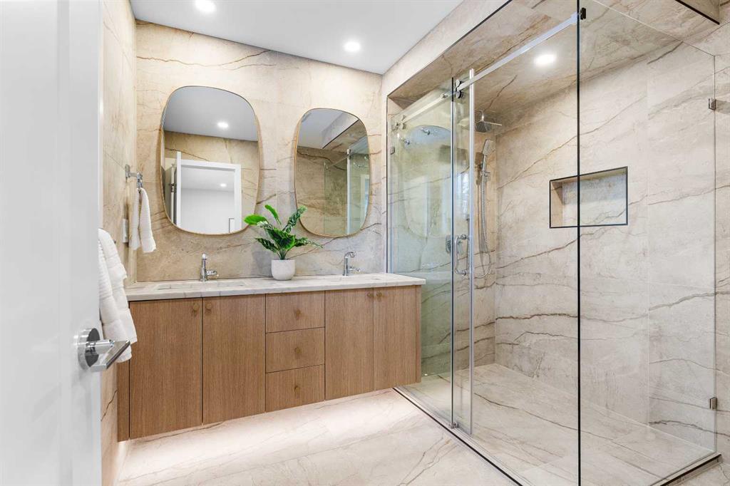 Meticulously redesigned from top to bottom, this two-storey residence offers over 2,500 sq ft of developed living space, featuring 5 spacious bedrooms and 4 full bathrooms, including a private and luxurious primary retreat. The thoughtfully designed layout provides open-concept living while still offering ample space for privacy and versatility—ideal for families and entertaining alike. No expense was spared, with all new electrical and plumbing systems providing comfort and peace of mind. Large new windows flood the home with natural light, highlighting the gleaming hardwood floors, premium finishes throughout, and a chef-inspired kitchen equipped with high-end appliances—sure to impress even the most discerning buyer. Step outside to your expansive, secluded backyard spanning over 7,500 sq ft, complete with mature landscaping and west exposure, perfect for summer barbecues, gardening, or relaxing in complete privacy. Kelvin Grove is known for its serene, family-friendly atmosphere, mature trees, abundant green space, and strong sense of community. Enjoy access to a brand-new community centre with updated tennis and pickleball courts, as well as walking distance to some of SW Calgary’s top schools, Heritage Park, and the Glenmore Reservoir pathway system. This central location offers easy access to work, shopping, services, and major amenities—while maintaining a quiet residential feel.