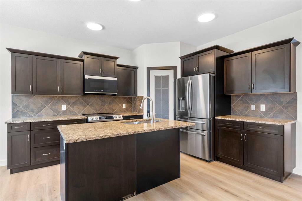 | FULLY RENOVATED | 3 BED & 2.5 BATH | BONUS ROOM & OFFICE | DOUBLE GARAGE | Welcome to this beautifully renovated home in the highly sought-after community of Williamstown in NW Airdrie—where comfort, style, and convenience come together effortlessly. Thoughtfully updated throughout, this property showcases high-end upgrades including new appliances, premium vinyl plank flooring, 40oz carpet, fresh paint, updated baseboards and trims, and more. Set in a vibrant, family-friendly neighbourhood, Williamstown offers unmatched walkability to parks, scenic pathways, peaceful ponds, the Nose Creek Preserve, and multiple amenities. A charming southwest-facing front porch sets the tone—perfect for morning coffees and relaxed evenings. Step inside to a private foyer with a coat closet, leading into a bright, open-concept main floor bathed in natural light. Newly installed flooring, a soft neutral colour palette, and large windows create a welcoming and airy feel throughout the year. A versatile office off the main living area doubles as a family room or den, offering flexibility for any lifestyle. The spacious living room features a rare gas fireplace and views of the backyard. The kitchen—designed for both everyday living and entertaining—includes granite countertops, white steel appliances, a large island, dark cabinetry, upgraded pot lighting, and a pantry for added storage. The adjacent dining area is surrounded by picturesque windows, offering an inviting space for meals or gatherings. Down the hall is a discreet powder room combined with the laundry area, along with a well-designed mudroom that connects directly to the oversized double garage, complete with epoxy flooring and LED lighting. Upstairs, the new plush carpeting ties the space together beautifully. The east wing features a massive bonus room with three large front-facing windows—ideal for an entertainment setup. The west wing hosts the spacious primary suite with a walk-in closet and a luxurious 4-piece ensuite. Two additional bedrooms and a second full bathroom complete the upper level. The undeveloped basement provides a blank canvas, equipped with bathroom rough-ins and a large egress window, ready for your future vision. Outside, the generous backyard is primed for summer enjoyment with a large deck perfect for BBQs and gatherings. You’re steps from Herons Secondary School, moments from shopping centres, and just a quick hop to local transit and QE2—making daily errands and commuting a breeze. This exceptional home delivers the perfect blend of lifestyle, location, luxury and is truly the BEST VALUE in Airdrie. Don’t miss your chance—book your private showing today.