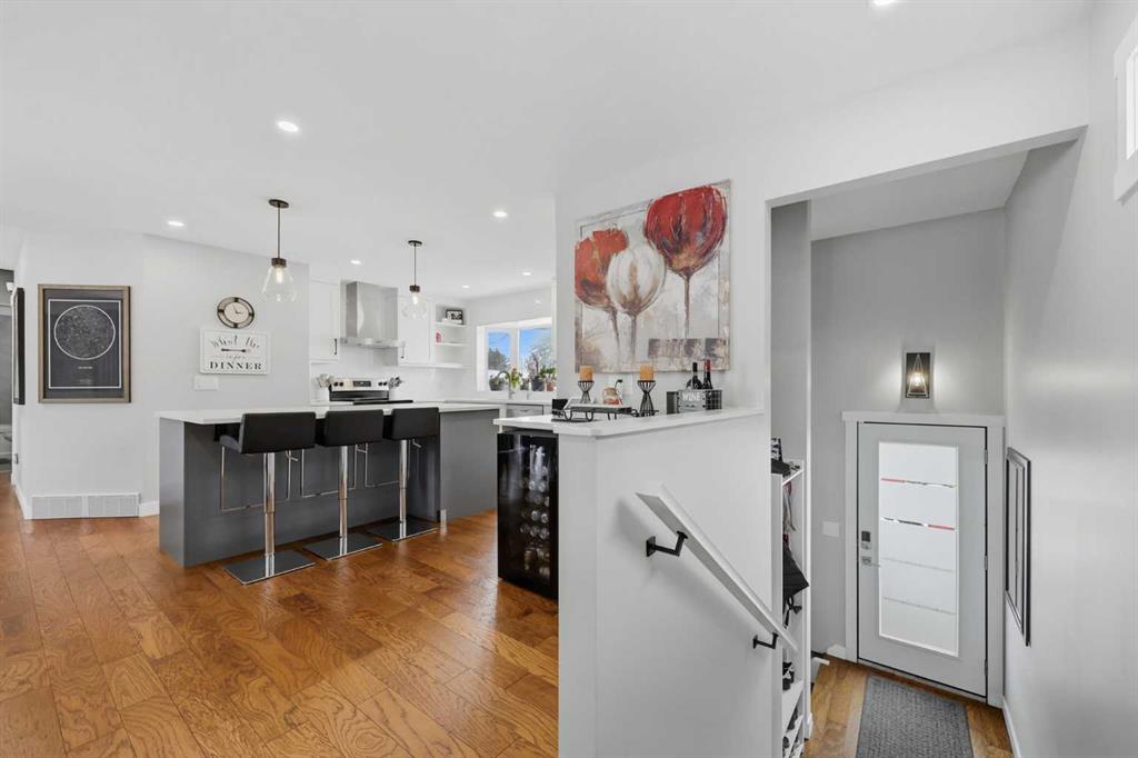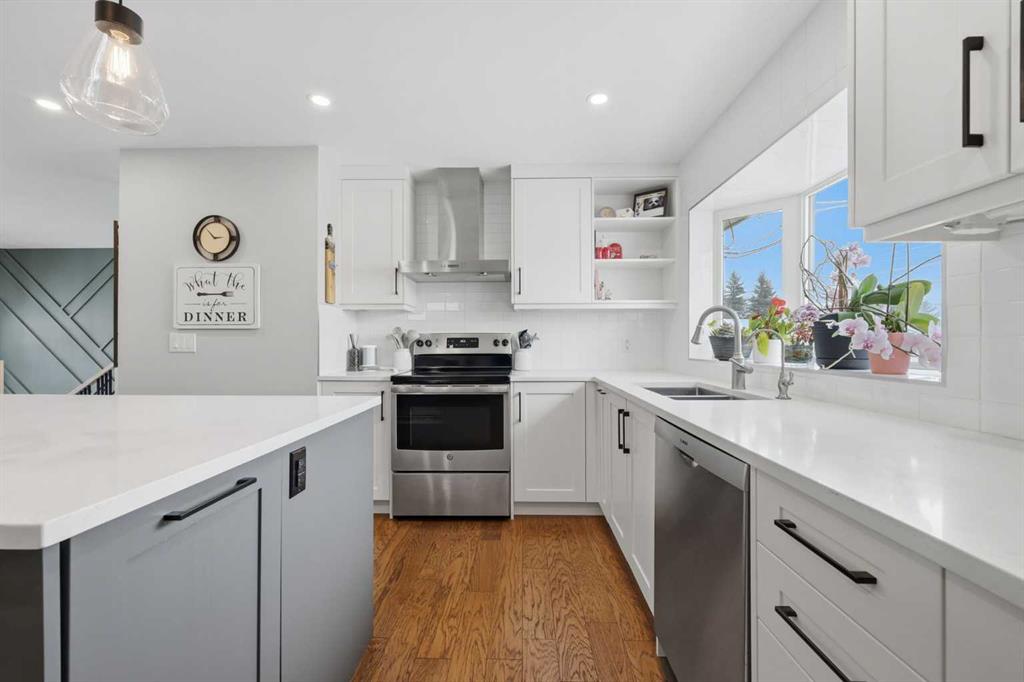 Nestled in the sought-after golf course community of Maple Ridge, this home offers a balance of suburban quiet and convenient city access. Families will appreciate being within walking distance to Maple Ridge Elementary School and R. T. Alderman Junior High School. Commuters benefit from quick connections to Deerfoot Trail and Stoney Trail, making travel to downtown or around the city straightforward. Welcome to 1015 Maplecroft Road, a thoughtfully updated 4-bedroom, 3-bath bi-level offering a great balance of style, comfort, and functionality. The welcoming front entrance features a wood-enhanced feature wall, setting the tone for the home’s modern updates. The main floor has been reconfigured into a bright open-concept layout suited to both everyday living and entertaining. At the centre of the home is the updated kitchen with quartz countertops, a large island with a built-in microwave, and abundant cabinetry with practical storage solutions, including a spice rack pullout and lazy Susan pantry. A dedicated beverage centre adds convenience, and a reverse osmosis system under the sink provides filtered drinking water. The redesigned back staircase creates an easy transition to outdoor living, leading to a covered deck ideal for relaxing or hosting friends. The main level has two bedrooms, including a primary suite with a California Closets walk-in and an ensuite featuring a large shower. The second bedroom also includes a custom closet and works well as a guest room or home office. A full 4-piece bathroom completes this level. The fully finished lower level expands the living space with two large bedrooms, a third bathroom with a custom shower, and a spacious family room centred around a second gas fireplace. Outside, the landscaped yard with mature trees offers space to gather around the fire pit, along with a large shed and double detached garage. Established perennial gardens add colour throughout the spring and summer.