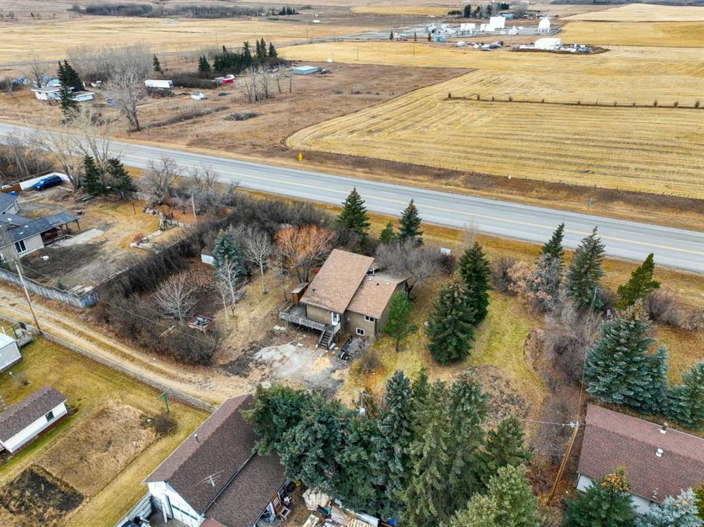 This unique miniature acreage in the hamlet of Naphtha offers 0.5 acres of space with its own well and septic system, surrounded by mature trees and plenty of room to grow your own food. The single-level home features two bedrooms and one bathroom, with a main living area that feels bright and open thanks to soaring vaulted ceilings, large windows, and an abundance of natural light. The kitchen includes knotty pine cabinets, and the laminate flooring adds to the warm, rustic feel. The lower level offers a spacious rec room and potential for an additional bedroom. Situated between Diamond Valley and Longview along Highway 22, this property is just five minutes from Diamond Valley’s Black Diamond side, making it a rare opportunity for anyone seeking space, privacy, and country living with easy access to nearby amenities.