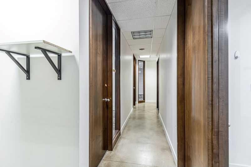 This impressive 2,619 sq. ft. main-floor, end-unit office condominium in the Douglasdale Professional Building presents a standout opportunity for businesses seeking strong visibilty along Calgary’s busy 24th Street corridor. Fully renovated in 2018 with a $200,000 investment, the Space was originally tailored for a boutique law firm and now offers a polished, efficient layout beginning with a finished shared foyer that leads into a warm reception area accented by exposed brick and an adjacent client seating zone. The interior includes six well-planned private offices, two 2-piece washrooms, dedicated copy and file rooms, and a generous staff kitchen/lunchroom outfitted with quality cabinetry, an inset double sink, tiled backsplash, built-in microwave, dishwasher, and refrigerator. High-end touches such as etched concrete flooring with carpet inlays, 9-foot ceilings, full-height doors, and full wheelchair accessibility contribute to a refined and professional atmosphere. The property provides six assigned parking stalls plus 25 additional shared surface stalls, ensuring ample parking for both staff and visitors. Located just minutes from Quarry Park-with its extensive green spaces, established business community, and mixed-use developments-the site benefits from excellent drive-by exposure, convenient access to major. roadways, and proximity to essential amenities. Well-suited for professional services, veterinary practices, or corporate operations, this premium space offers a compelling opportunity in one of Calgary’s most desirable commercial areas.