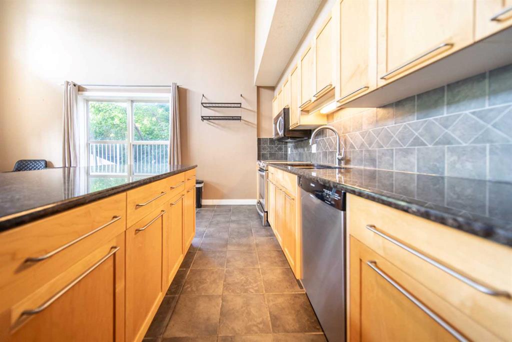 This bright and airy 2-bedroom, 2-bath loft-style condo offers over 1,000 sq. ft. of modern, open-concept living in one of Calgary’s most desirable inner-city neighbourhoods. The south facing corner unit is bathed in natural light thanks to its soaring ceilings and dramatic wall of windows, creating a space that feels both spacious and inviting. The main level features a stylish kitchen with granite countertops, rich maple cabinetry, and stainless steel appliances perfect for cooking, entertaining, or casual nights in. The open living and dining area flows effortlessly to a sunny private patio, ideal for morning coffee or evening gatherings. Upstairs, the lofted primary suite is a true retreat with a full ensuite bath and generous closet space. A second bedroom and full bath on the main level add versatility ideal for guests, a home office, or a roommate setup. Additional perks include in-floor heating throughout, two titled underground parking stalls, a separate storage locker, and in-suite laundry. Located in vibrant South Calgary, you’re steps from 17th Avenue or Marda Loop’s trendy shops, restaurants, cafés, parks, and transit everything you need for connected, urban living.