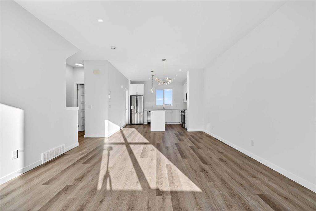 OPEN HOUSE on Saturday and Sunday from 12-5pm. Please go to the show home located at 101, 28 Red Embers Plaza NE for access. StreetSide proudly presents this highly desired interior-unit townhome that offers a sophisticated blend of expansive living space and elegant modern finishes. Designed with versatility in mind, the residence features four spacious bedrooms—including a convenient lower level bedroom ideal for guests or a home office—and two and a half well appointed bathrooms. The heart of the home is an open-concept main floor that flows seamlessly onto a private balcony, perfect for indoor-outdoor entertaining. Culinary enthusiasts will appreciate the chef-inspired kitchen, which comes standard with modern white slab-style cabinetry, a full bank of storage drawers, polished white quartz countertops, and premium stainless steel appliances. The interior aesthetic is defined by contemporary durability, featuring luxury vinyl flooring throughout the primary areas and premium 8lb underlay carpet for added comfort on the stairs and upper level. Practicality meets luxury with a dedicated upper-level laundry room and an attached double car garage. Located within Redstone Square this home places you at the heart of the dynamic Redstone neighborhood. Enjoy the ease of a convenient location with quick access to major routes, including Stoney Trail, ensuring you are never far from the city’s best. The community is strategically positioned near future commercial developments, promising shops, services, dining, and entertainment options just moments from your doorstep.