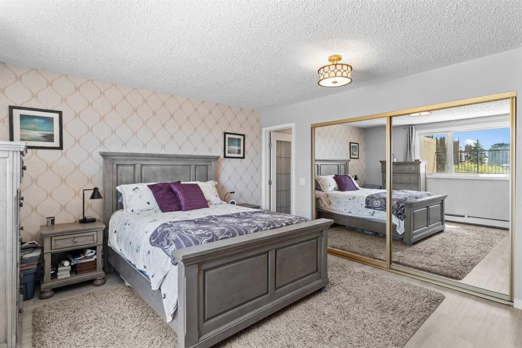 Located in the sought-after community of Crescent Heights, this spacious 2-bedroom, 2-bathroom unit offers over 1,200 sq ft of living space and includes two underground parking stalls. The property has been extensively renovated from top to bottom, featuring new light fixtures and vinyl plank flooring throughout. Both generously sized bedrooms can accommodate king-size beds and additional furniture, with the primary bedroom offering a large closet and a 3-piece en-suite. The second bathroom is spa-inspired and fully upgraded. The laundry room provides ample storage space and is conveniently located behind the modern kitchen. The kitchen is equipped with quartz countertops, stainless steel appliances, raised and slow-close cabinets, an upgraded eating bar, and neutral finishes. Large windows bring in abundant natural light, complementing the open floor plan that includes a spacious dining area and living room. The south-facing patio is exceptionally large and offers impressive views of downtown. Situated near amenities, public transit, and downtown access.