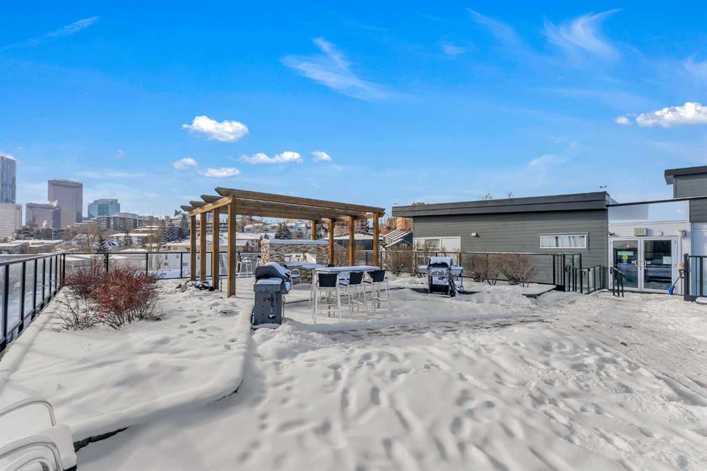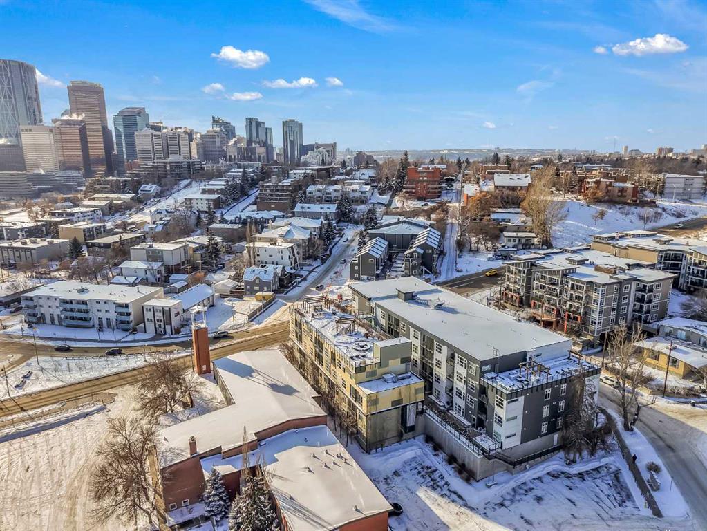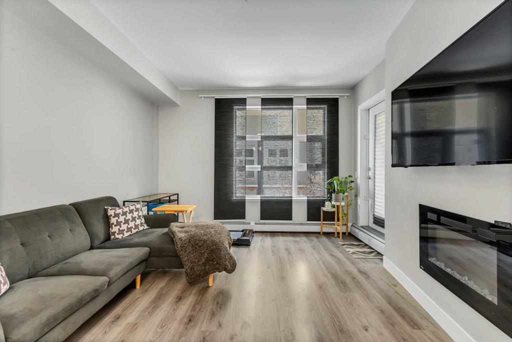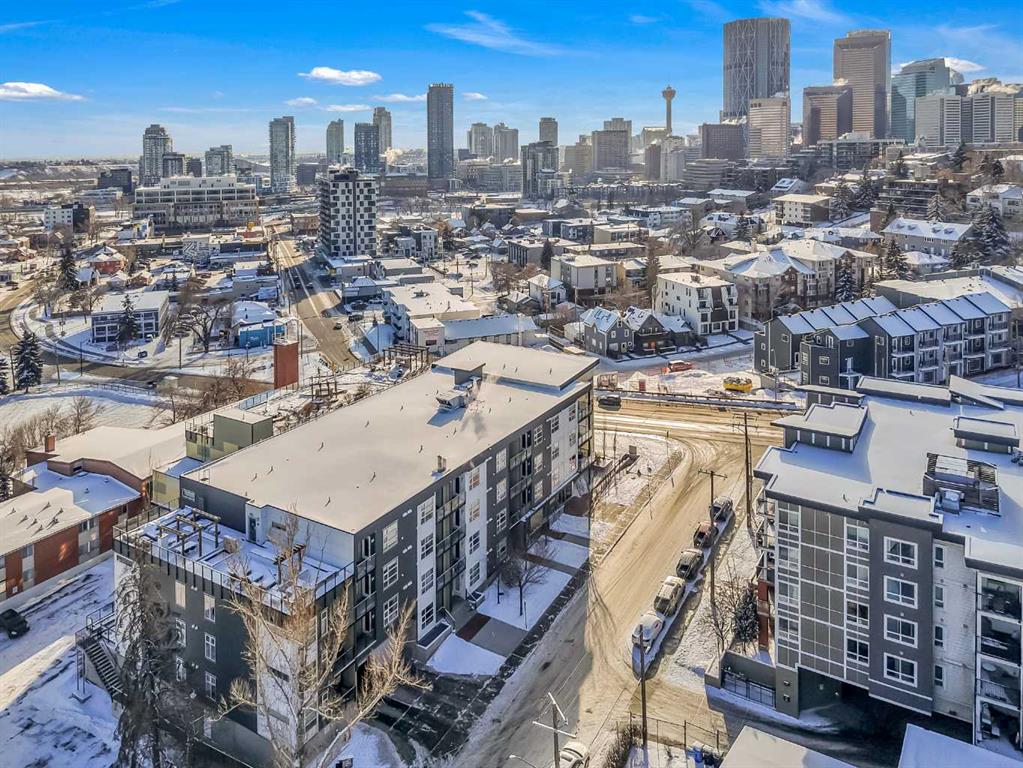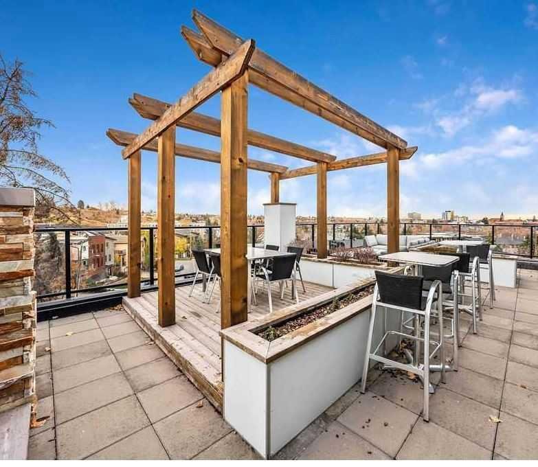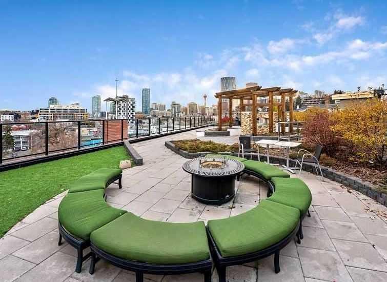 ~UPGRADED WITH AIR CONDITIONING~, LOCATION, PROXIMITY, and AFFORDABILITY awaits! Fantastic opportunity to own as an investor, a first-time home buyer, or a downsizer in the trendy and sought-after inner-city community of BRIDGELAND. This cozy 2-bedroom, 2-bathroom, with 1- titled underground parking & assigned storage space is all you need! Offering custom built-in appliances, two-tone kitchen cabinetry, Quartz countertops, and laminate flooring seen throughout! This unit delivers with an open-concept layout, modern finishes featuring a blend of urban convenience, and a twist of European flair! Primary bedroom with a private 4pc-ensuite, and secondary bedroom well-appointed in size can double up as an office, both rooms come with built-in wardrobes and located opposite of floor plan which makes for optional roommate living enjoyable and practical. This unit is quiet & south-facing, with a private patio entrance/door via the exterior building (southside), allowing for quick/easy access to your unit. Take advantage of the building’s unique amenities, including a PET-WASH station, a boutique style fitness/yoga area, and a RARE rooftop patio/terrace with communal spaces, for get-togethers, shared experiences, and BBQ mealtimes – all while enjoying unobstructed views of Calgary’s downtown skyline! Features: INSUITE laundry | Private patio/balcony with gas hook-up for all your fresh-air and BBQ needs. Electric Mounted fireplace | GAS Cook-top |building elevator to access all floors | Wheel-chair accessibility if needed | An UNBEATABLE location, with shops, cafes, playgrounds, schools, convenient public transit, paved walkway/pathway systems, and award winning restaurants-all within a 1km radius! Don’t delay and book your private showing today!