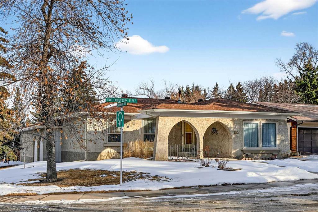 Welcome to 102 Canterbury Place SW in Calgary, a beautifully maintained home that blends comfort, thoughtful updates, and timeless charm in a quiet, established estate community. Step inside to discover a warm and inviting layout featuring one of the sunken family rooms adjacent to the foyer creating an open and airy space perfect for relaxing or entertaining. At the rear of the home, patio doors provide direct access to a private courtyard and secluded concrete patio, offering the ideal setting for morning coffee or summer evenings outdoors. The kitchen is both stylish and functional with granite countertops, an undermount granite sink, full-height cabinetry, stainless steel appliances, and convenient over-the-range microwave. Modern touches continue throughout the home with updated vinyl windows, newer lighting fixtures, and durable tile and laminate flooring. Designed for everyday living and gatherings alike, the main level also features a formal dining space situated between the front family room and kitchen, creating a natural flow for hosting family and friends. Through the kitchen step down to your second sunken family room with impressive 10’ ceilings, a gas fireplace and plenty of windows with views of the private yard and giving lots of natural light. On the main level you’ll also find 3 spacious bedrooms, including a primary retreat complete with a 3-piece ensuite featuring a fully tiled walk-in shower, granite countertop and walkthrough closet. A 4-piece main bathroom serves the additional bedrooms. The fully finished basement expands your living space with a large recreation/living room, a fourth bedroom with a legal-sized egress window, brand new carpet, and two massive storage rooms, ensuring there’s room for everything. The large laundry room with utility sink adds extra convenience. This home has been meticulously maintained with numerous updates and upgrades. To mention a few great features: Stucco siding, Water Heater (July 2024), New attic insulation (2025), Vinyl windows installed in recent years, Gas insert fireplace and an Oversized garage. Outside, the massive professionally maintained corner lot features beautiful perennial landscaping and a large concrete pad off the rear alley with RV-length parking. The west-facing front provides excellent natural light and sunny afternoons. With 3+1 bedrooms, multiple living spaces, abundant storage, and an oversized garage, this exceptional property offers the perfect combination of functionality, comfort, and pride of ownership in one of Calgary’s well-established and much desired neighbourhoods. A truly welcoming place to call home.