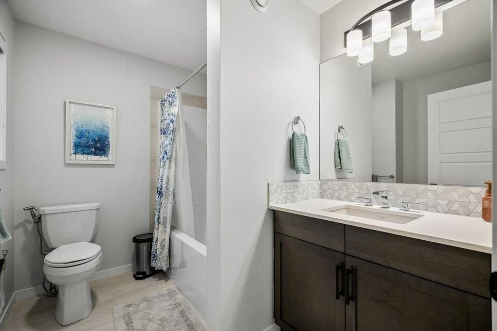 Open house Sunday February 22 from 1-3pm. Welcome to this Morrison-built home that stands out for its smart layout, strong separation of spaces, and move-in-ready condition—set on a TRADITIONAL LOT with a fully landscaped and fenced yard. Main Floor The main floor is intentionally designed for both productivity and connection. Durable vinyl plank flooring runs throughout, while a private enclosed front den offers true separation—ideal for working from home or flex use without sacrificing quiet. A bright front entry with 9-foot knockdown ceilings and a generous coat closet creates an immediate sense of openness. The garage entry features a functional mudroom with a broom closet, pocket door, and direct access to a 2-piece bathroom. The open-concept rear of the home flows into a well-proportioned kitchen, dining, and lifestyle space suited for hosting and everyday living. The kitchen features quartz countertops, a central island, extended-height cabinetry, soft-close doors and drawers, tiled backsplash, corner pantry, and a stainless steel appliance package including a French door refrigerator with water line and slide-in range. The lifestyle room offers a cozy electric fireplace, while the dining nook opens to the backyard through a garden door for easy indoor–outdoor flow. Upper Level Carpeted stairs with open railing lead to a bright upper floor anchored by a front bonus room with a vaulted ceiling, ideal for movie nights or a kids’ zone. Laundry is conveniently located on this level with added shelving and dual doors for a clean, streamlined look. Two well-sized secondary bedrooms are positioned near a 4-piece bathroom with quartz countertop, tiled tub surround, and linen closet. Tucked away at the back of the home, the primary retreat offers excellent privacy and space, complete with a walk-in closet and a 5-piece ensuite featuring quartz finishes, a fully tiled shower with 10mm glass enclosure, soaker tub, and private water closet. Basement The unfinished basement is a major value-add, offering a layout that makes future development straightforward. With SIDE-LOCATED STAIRS on a traditional lot, bathroom rough-in, HRV, forced-air furnace, and water softener already in place, the space can accommodate a future bedroom, bathroom, recreation area, and additional storage—ideal for growing families or long-term planning. Outdoor Space The fully landscaped backyard is ready to enjoy, featuring a deck, lower patio, green space, full fencing, and a storage shed. Central air conditioning ensures comfort through Calgary’s warm summer months. Located in a vibrant South Calgary community with quick access to major routes, this home offers everyday convenience without compromising space or livability. Overall, this home delivers a well-balanced combination of quality construction, stylish finishes, and future potential, making it a standout option for buyers seeking comfort and flexibility in a modern family home.